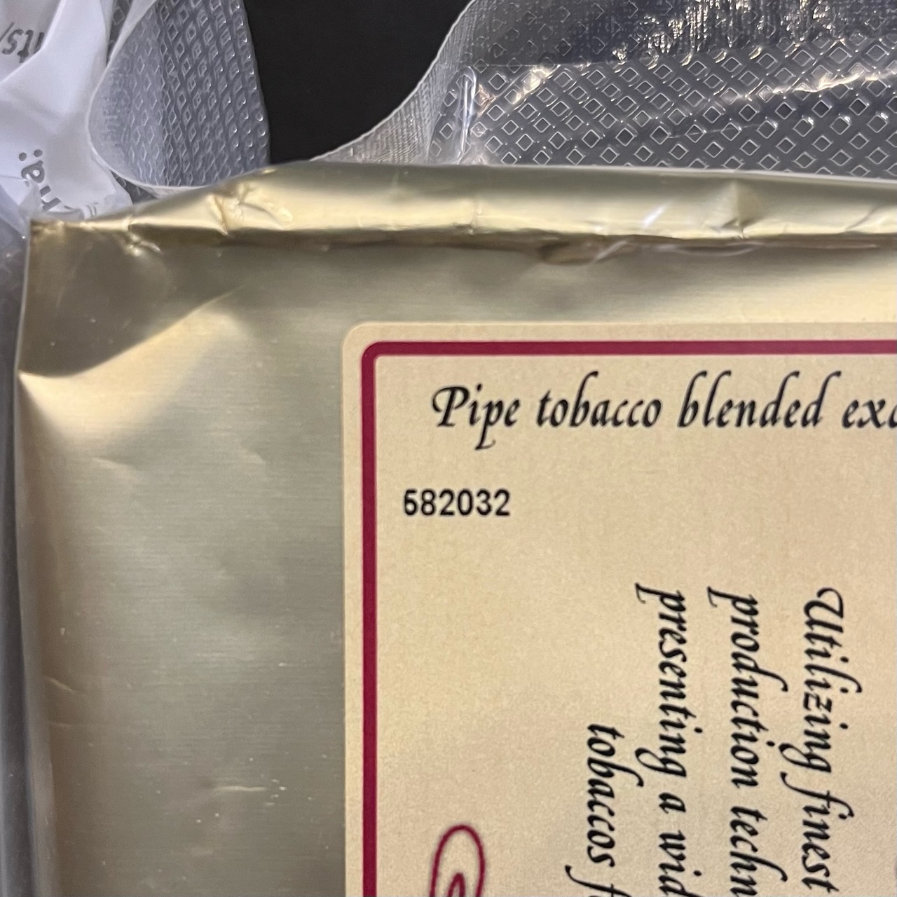 A blend of dark and golden Virginias are hot pressed until black, with added licorice essence from Esoterica with over 7 years of age. This factory sealed, 8oz bag was purchased in 2015 and was vacuum sealed shortly after purchasing. Stored in a temperature and humidity controlled environment.