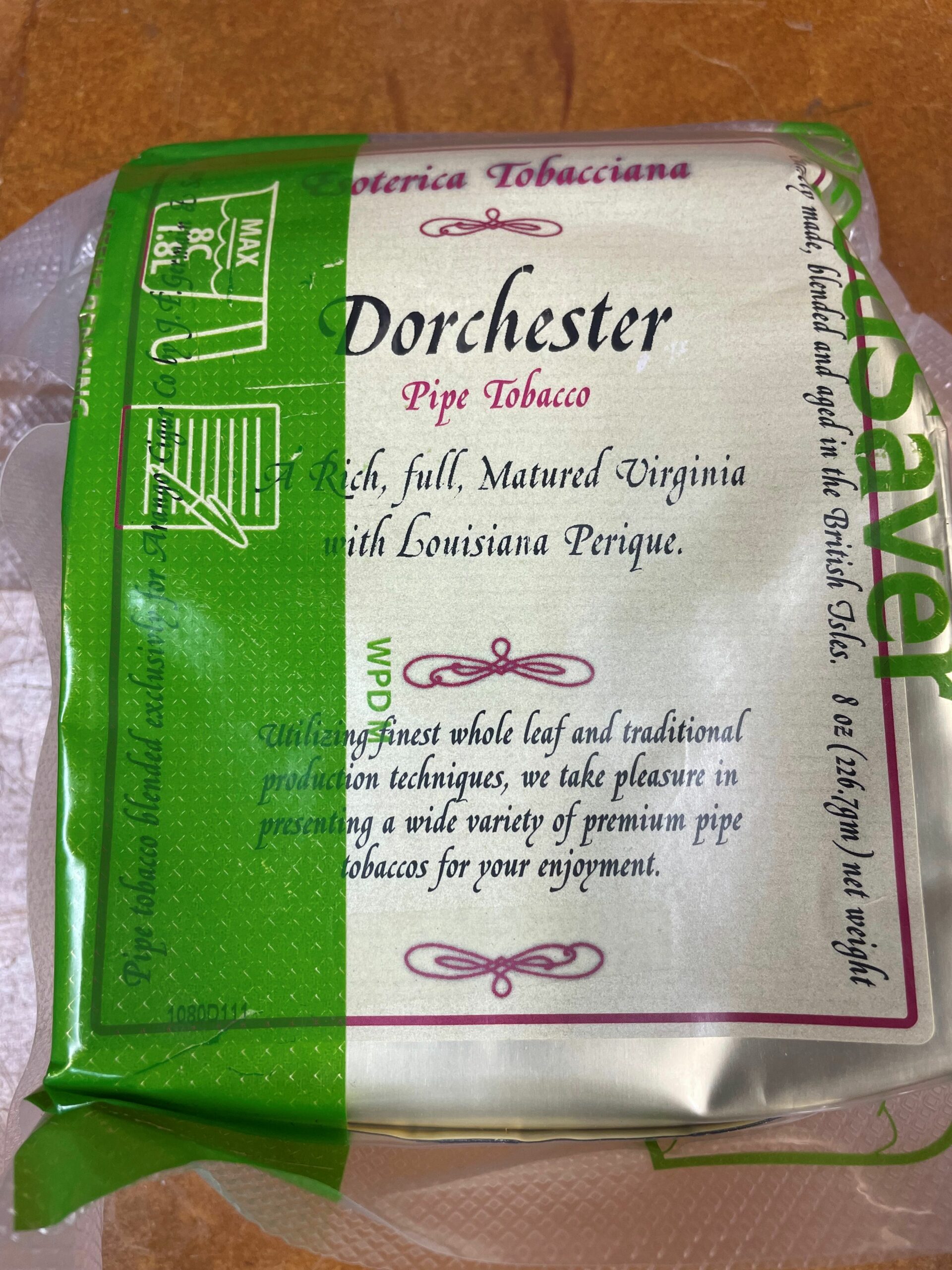 A special formulation of six Virginias plus Golden and Dark Virginias with air-cured leaf and a pinch of Louisiana Perique. Easy burning is ensured by the carefully selected cut. The Perique balances the Virginias with a hint of spice for the discerning palate.