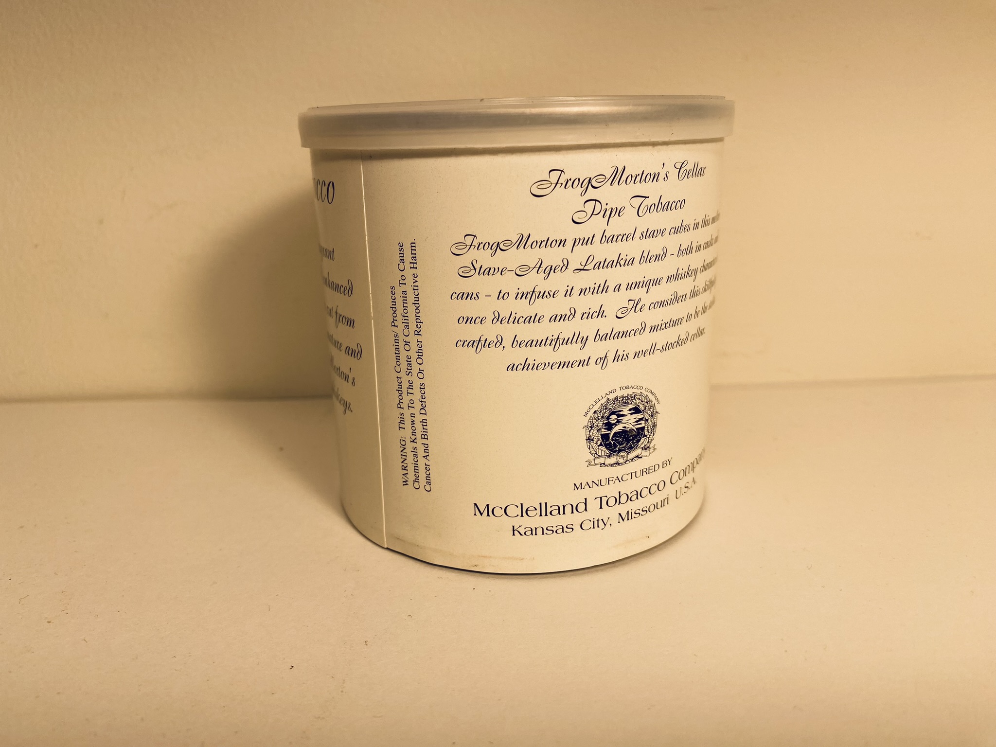 mellow, fragrant latakia blend aged with stave cubes cut from barrels used to mature and flavor Frog Morton's own special whiskeys.