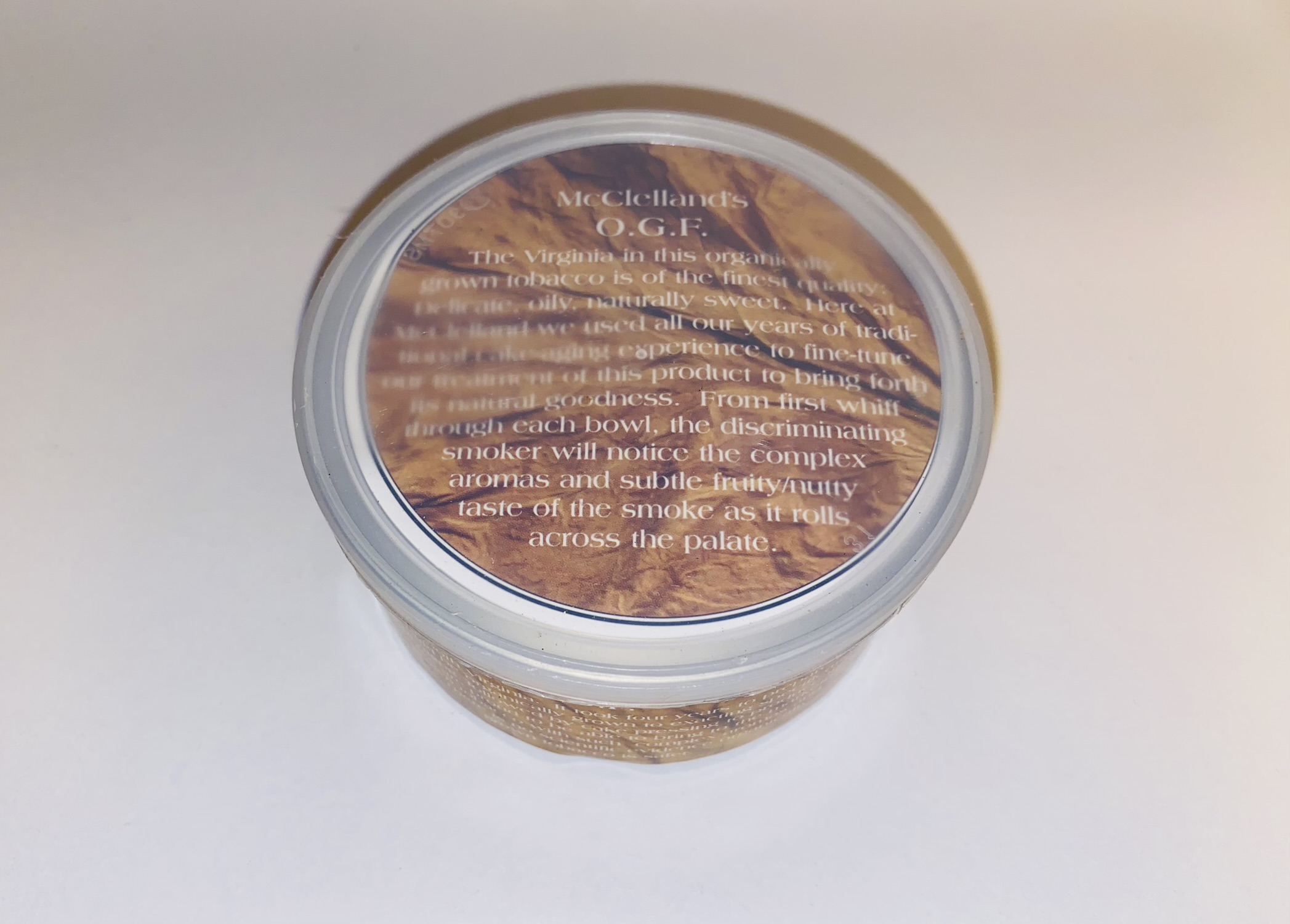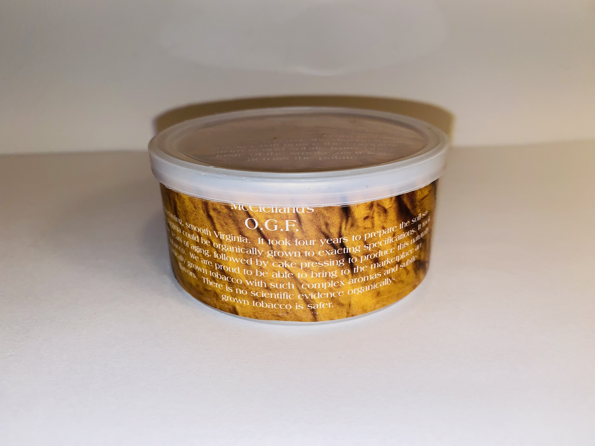 Notes: Pipestud had mentioned the problem McClelland had with this tobacco. My understanding is that they were NOT forced to stop production; they chose to. Mike had procured this wonderful organically grown Virginia leaf and planned to tin and sell it as "organic tobacco," which it is. The problem arose because McClelland had processed it using the same machinery as was used to process non-organic tobacco. This is a no-no. No organic product may contain any trace of non-organics. So, Mike sent this out as organically-GROWN, which it was, but was so disappointed and disgusted with the Federal nit-picking, he decided not to pursue the issue further.