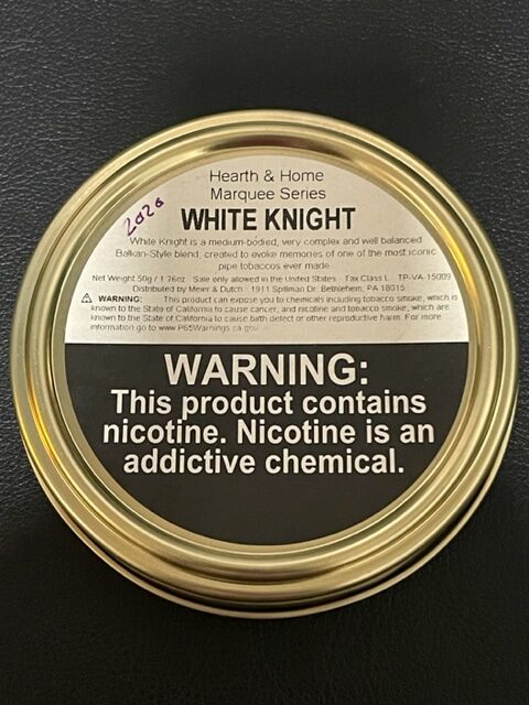 Notes: When we won the 2011 Balkan Sobranie 759 Throwdown at the Chicagoland Pipe and Tobacciana Show, with our entry, BlackHouse, it caused quite a stir, and the blend has become one of our best sellers. We followed that up with Fusilier's Ration, which was modeled after Bengal Slices, and it too has become incredibly popular. There was one other blend that I loved, that I thought about making a tribute to, because I enjoyed it so much. But I resisted, due to the iconic stature of the tobacco. After a couple of years of work, though, I finally put together a blend that I feel so confident in, that we're ready to bring you BlackHouse's cousin - WhiteKnight.