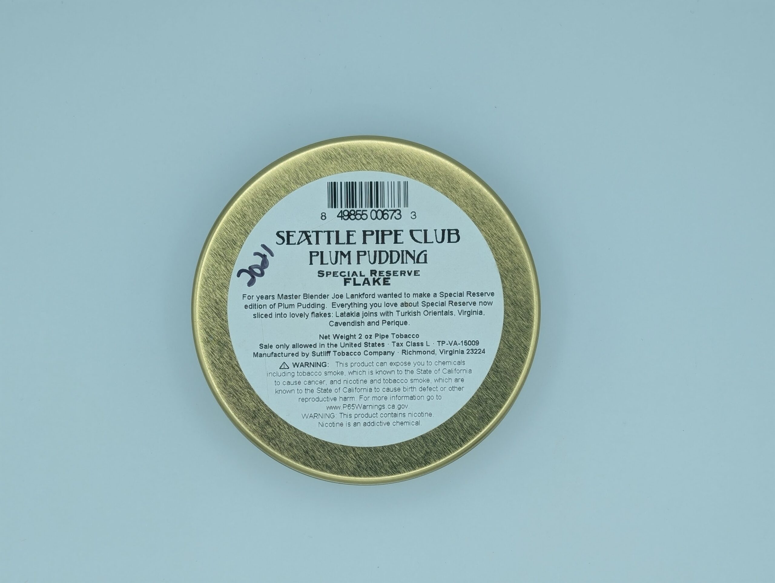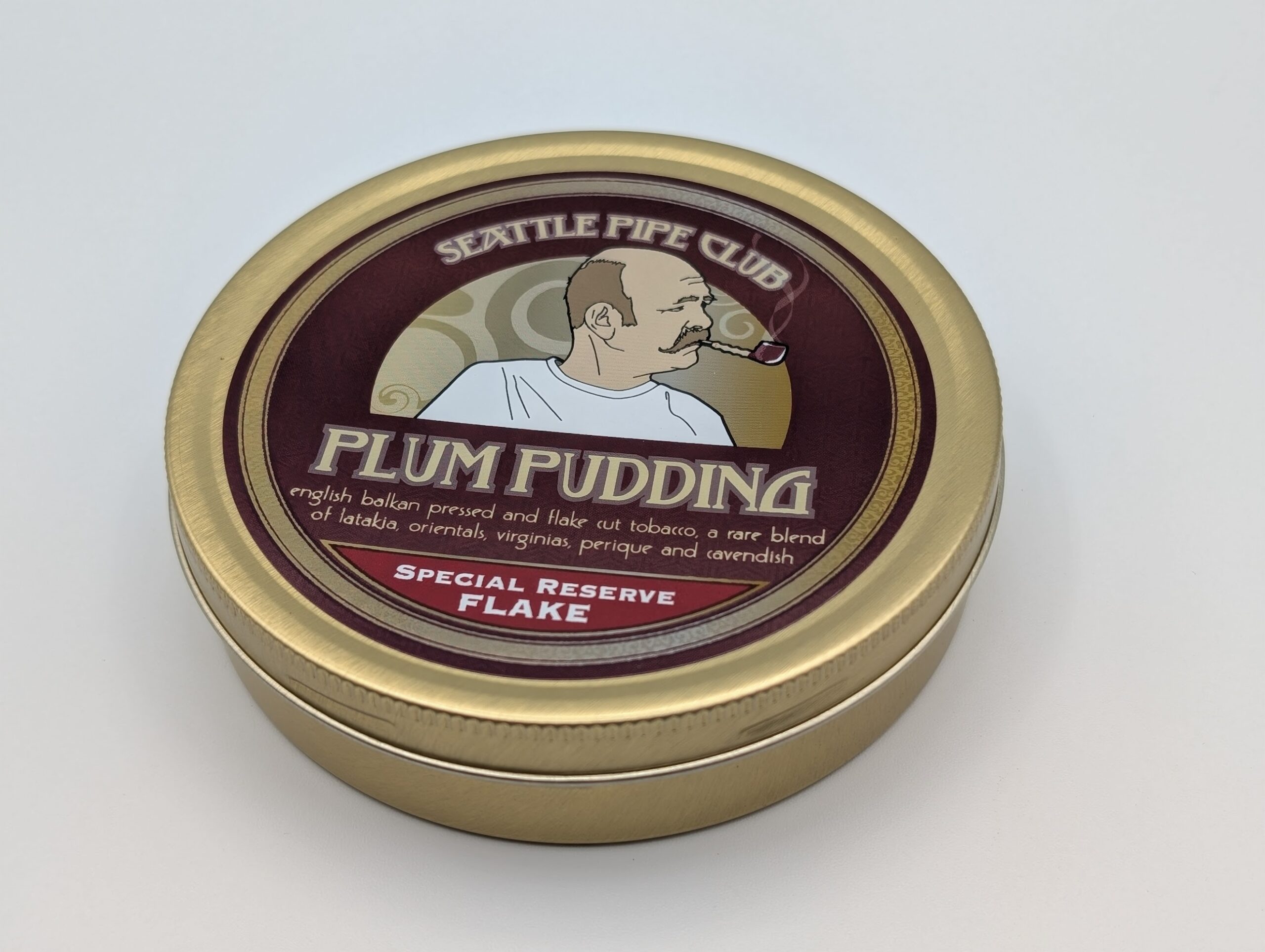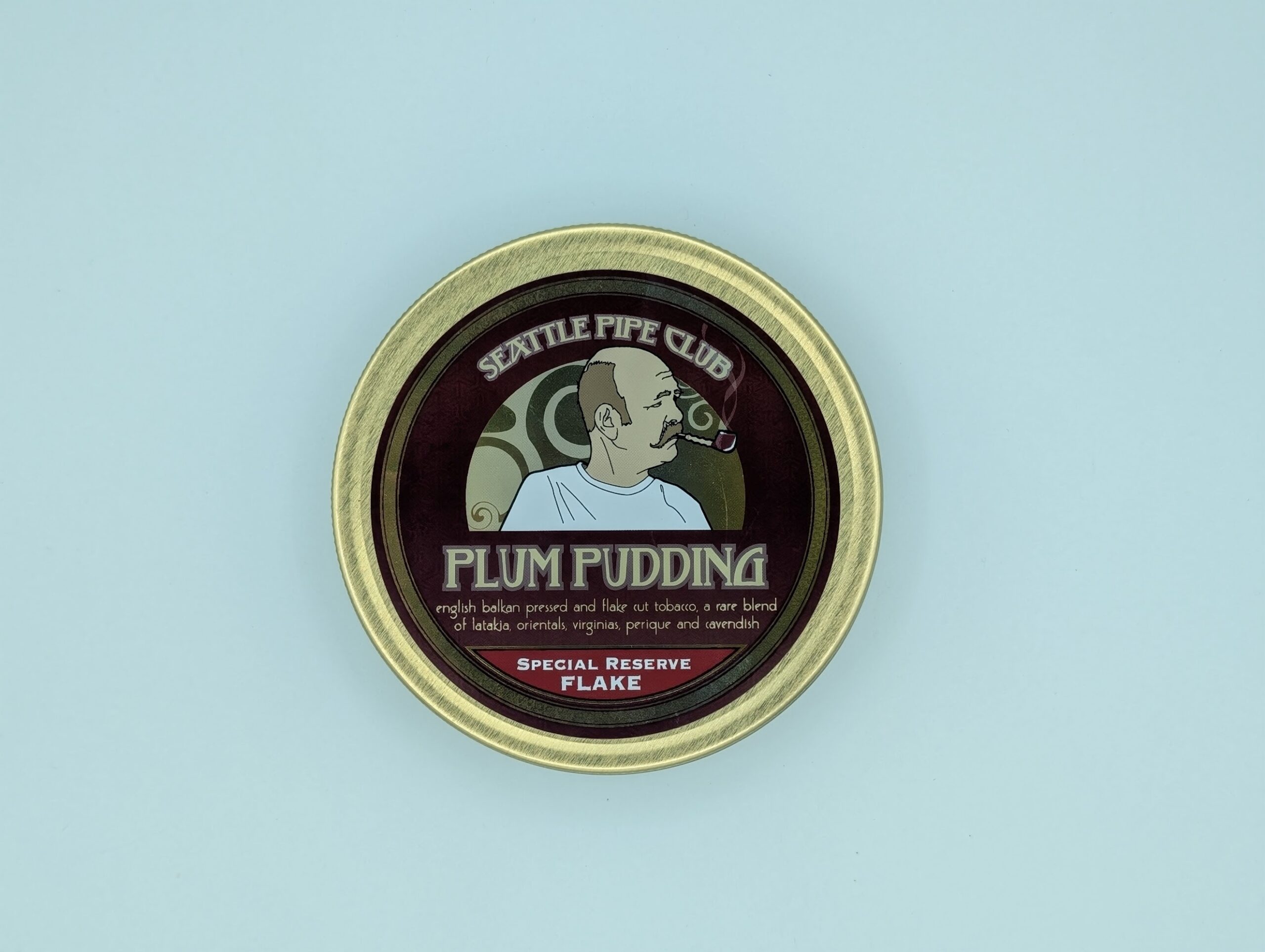Up for auction is a sealed 2oz tin of Seattle Pipe Club Plum Pudding Special Reserve Flake — the premium pressed-flake version of SPC’s most celebrated English/Balkan blend. Plum Pudding has long been considered a modern classic, and the Special Reserve Flake elevates it even further with rare, high-grade leaf and an elegant pressed presentation.