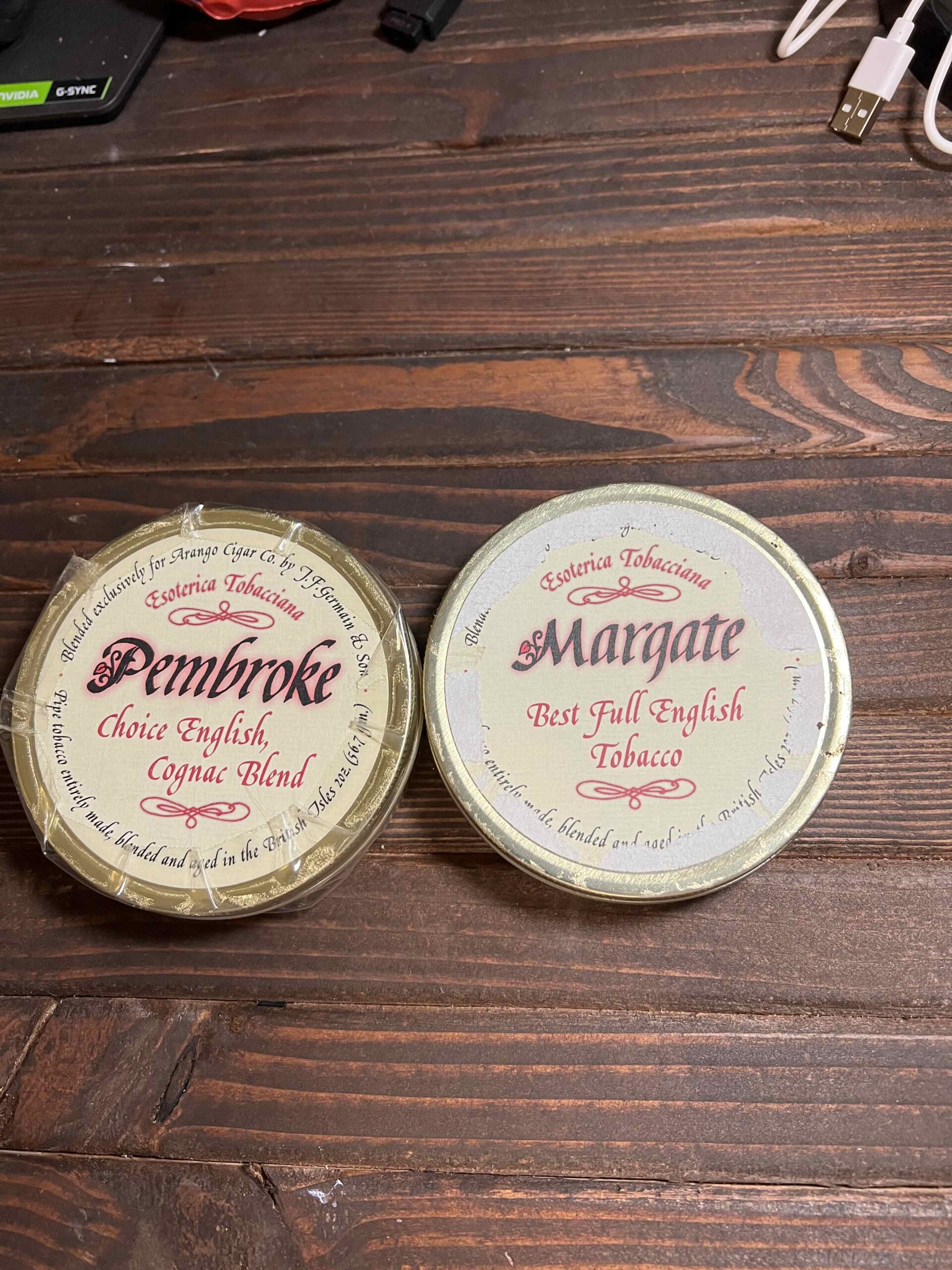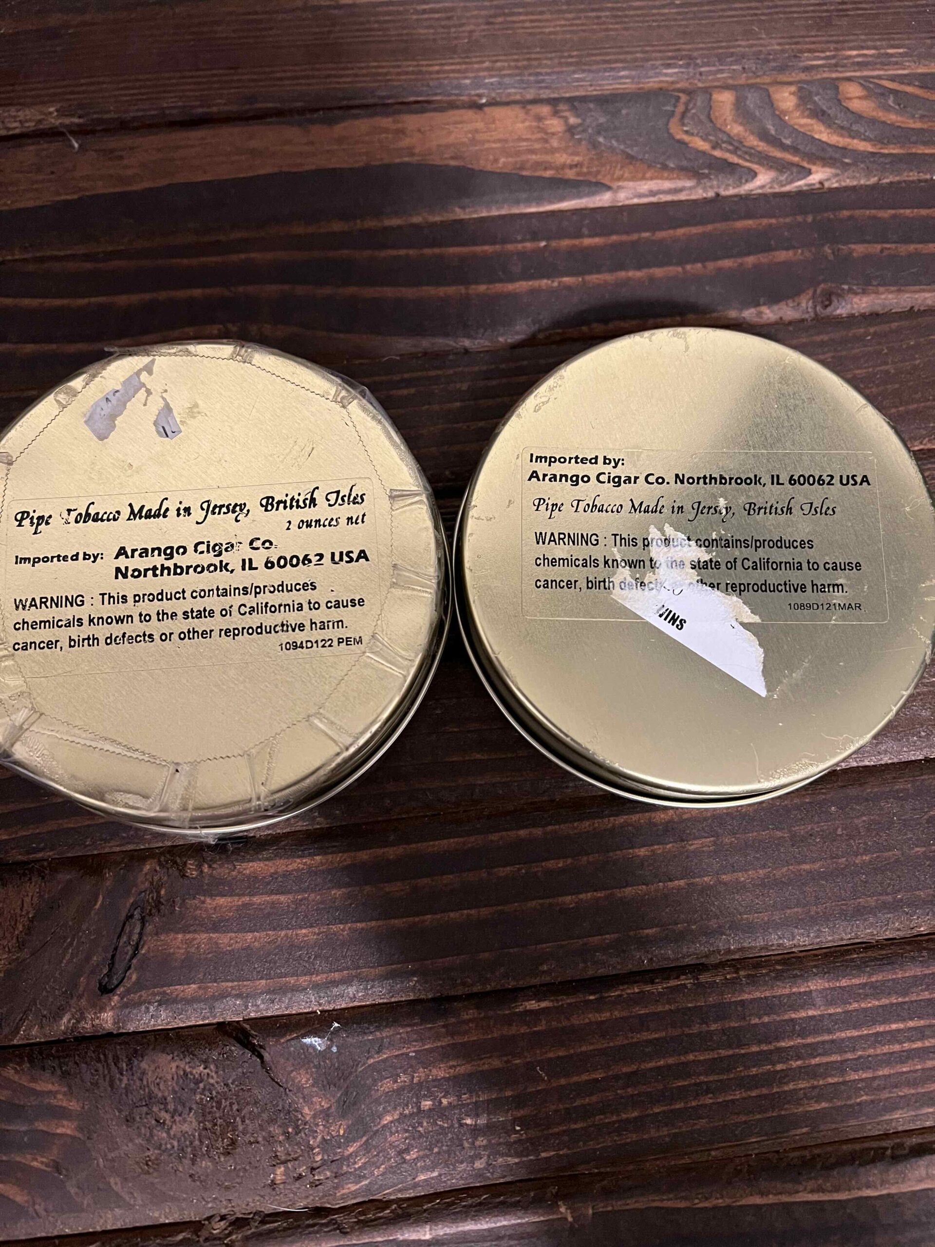 The tins may be ugly, but it’s what’s on the inside that counts. Esoterica Margate (2020) and Pembroke (2019) sealed and ready to go. The Margate has part of the outer label peeled off, as evident in the photos. The Pembroke has tape around the seal. Both seals are intact and the product has 2-3 years age already. Get it while you can!