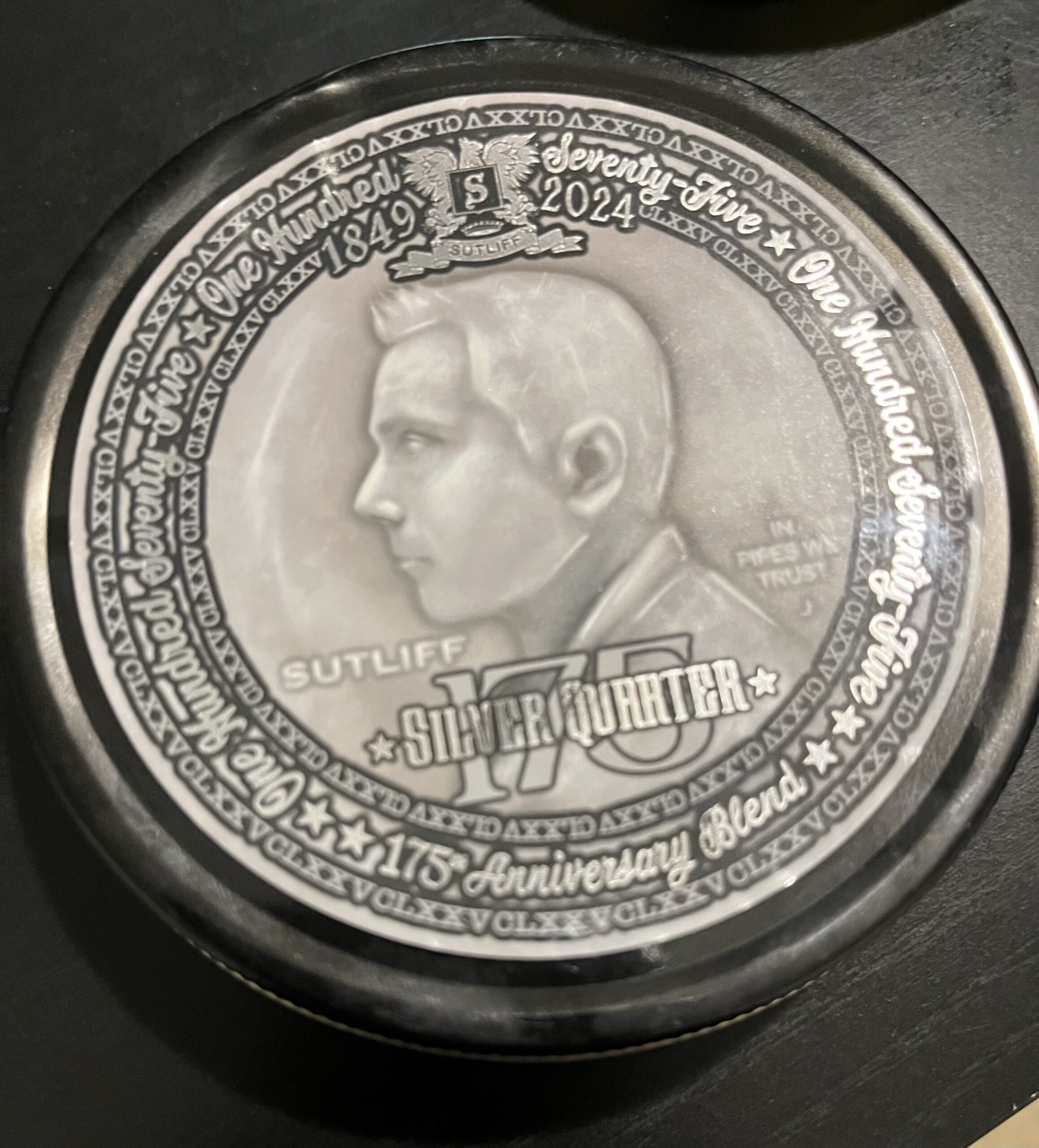 "REFLECTING OF SUTLIFFS 175 YEARS...SILVER QUARTER PAYS HOMEAGE TO SUTLIFFS ROOTS...TWO BROTHERS WHO POPULARIZED PIPE SMOKING IN....MINING SOCIETY OF SAN FRANCISCO"