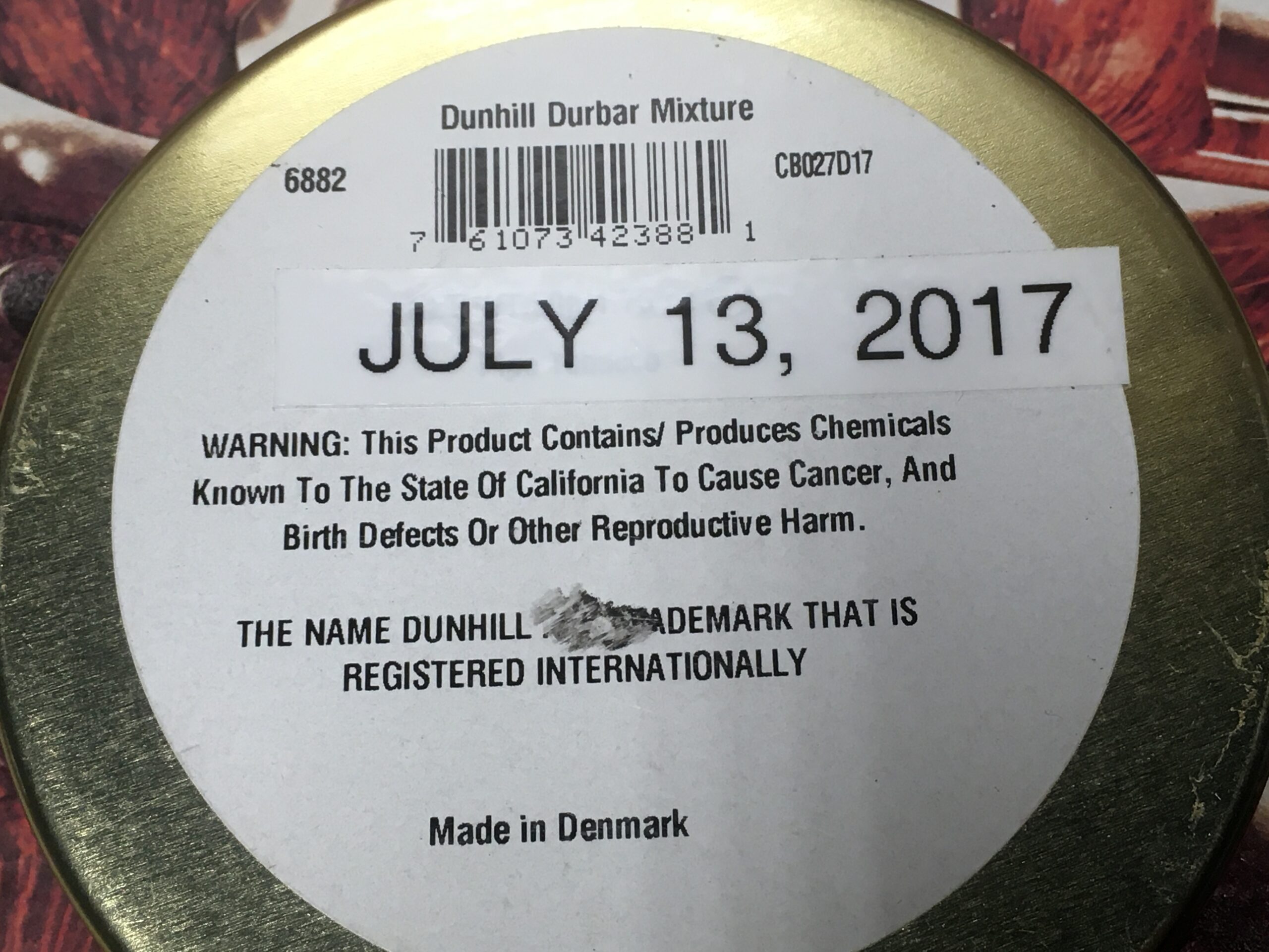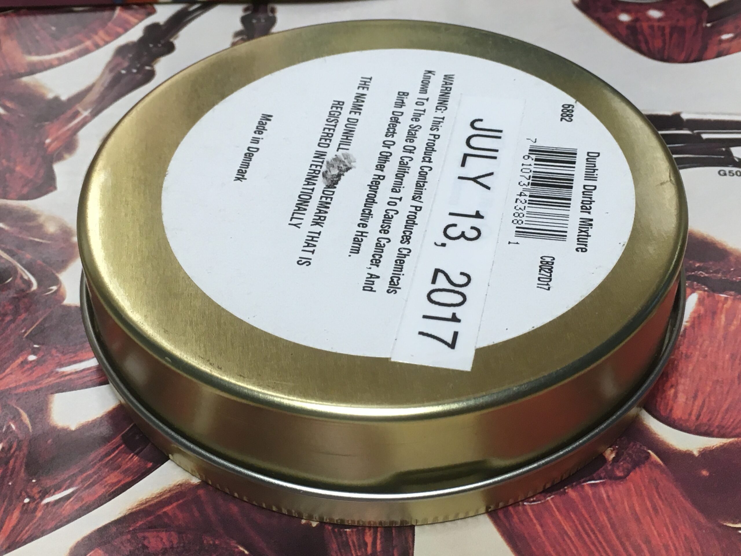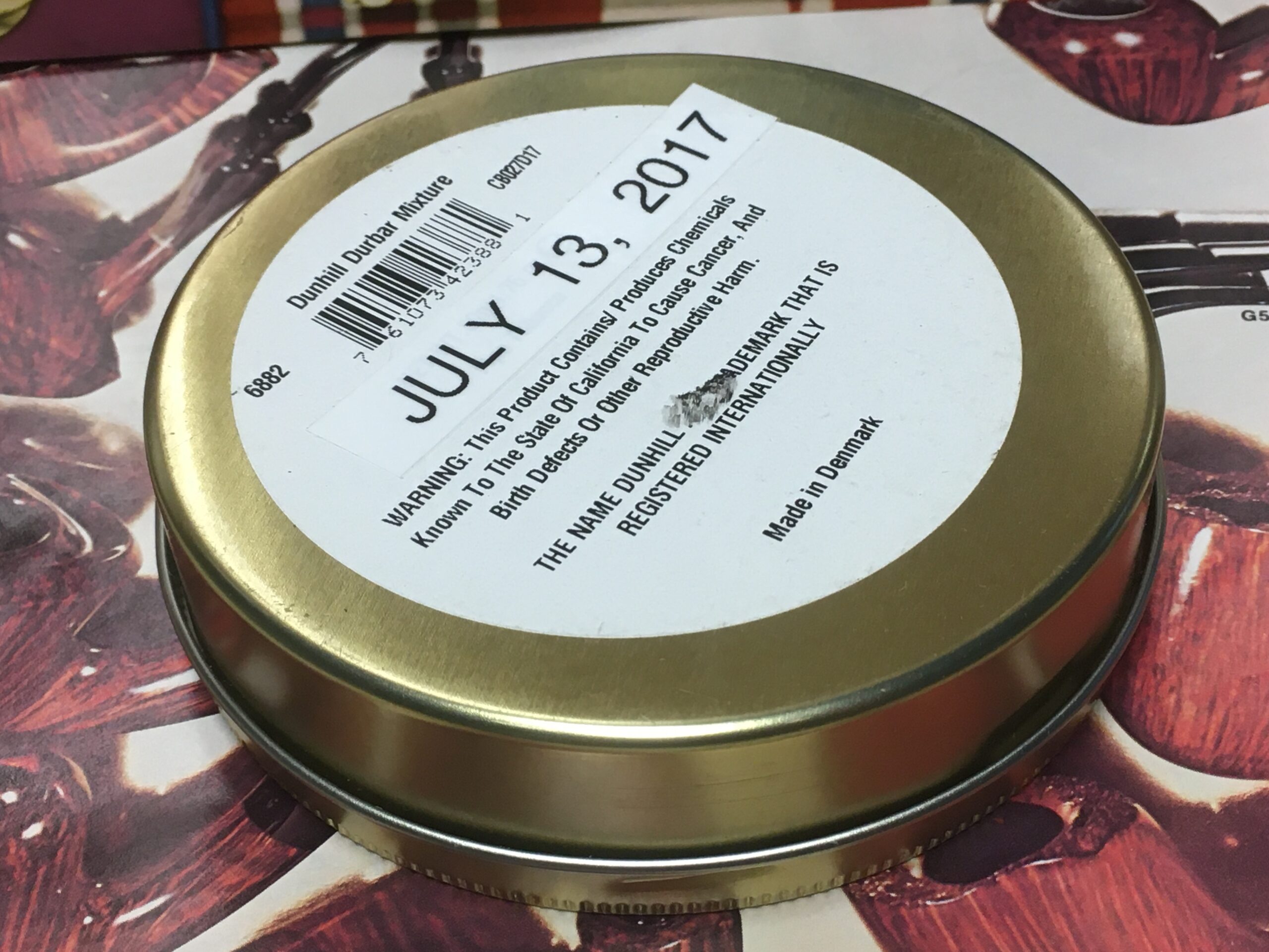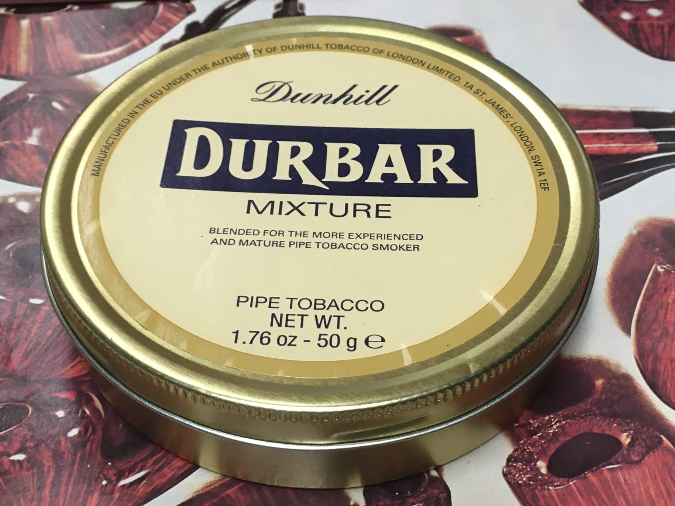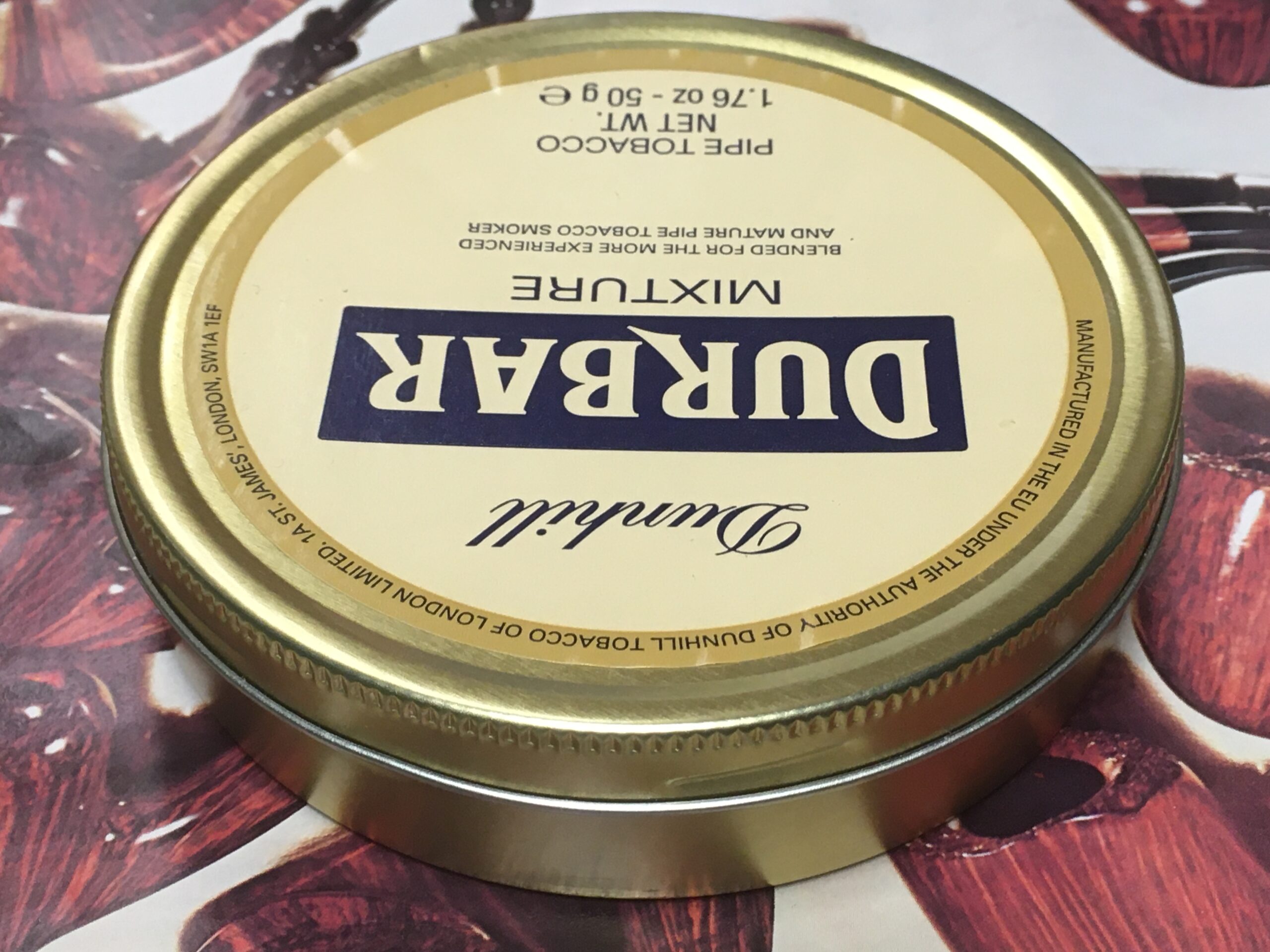 Original Dunhill Durbar Mixture Pipe Tobacco (2017) 50g - Sealed Tin. Dated with a home-printed label when it arrived from the supplier in 2017.