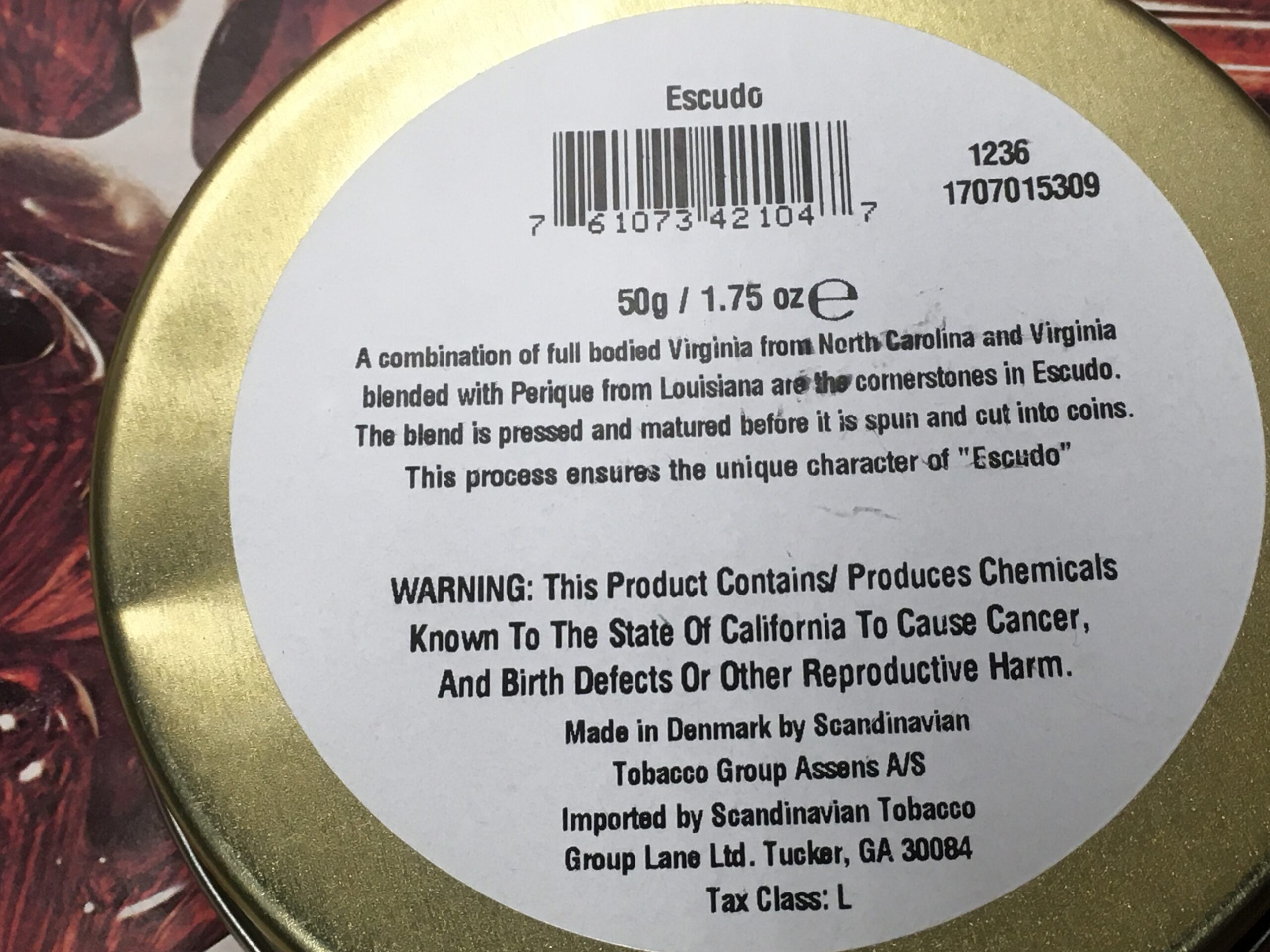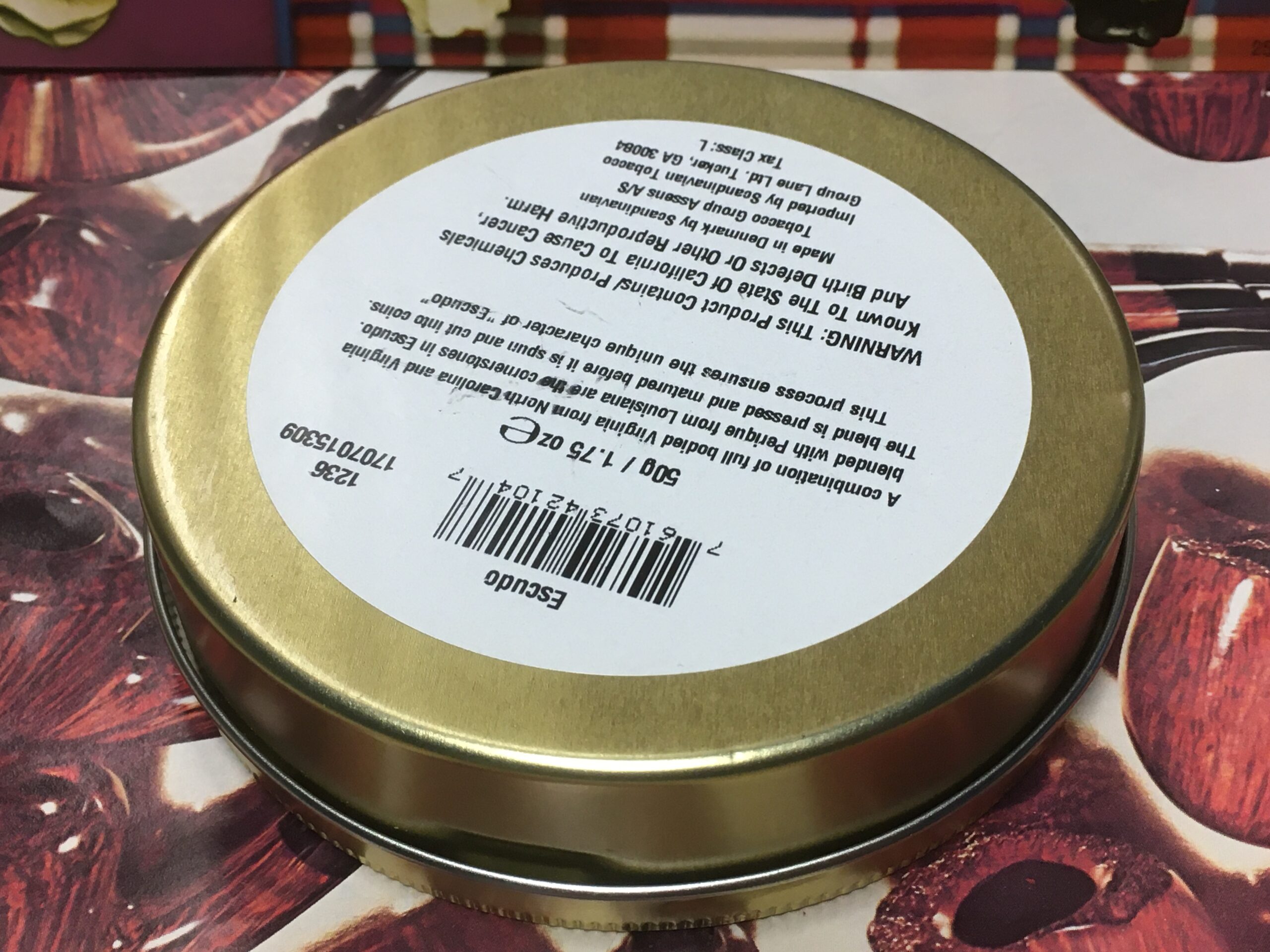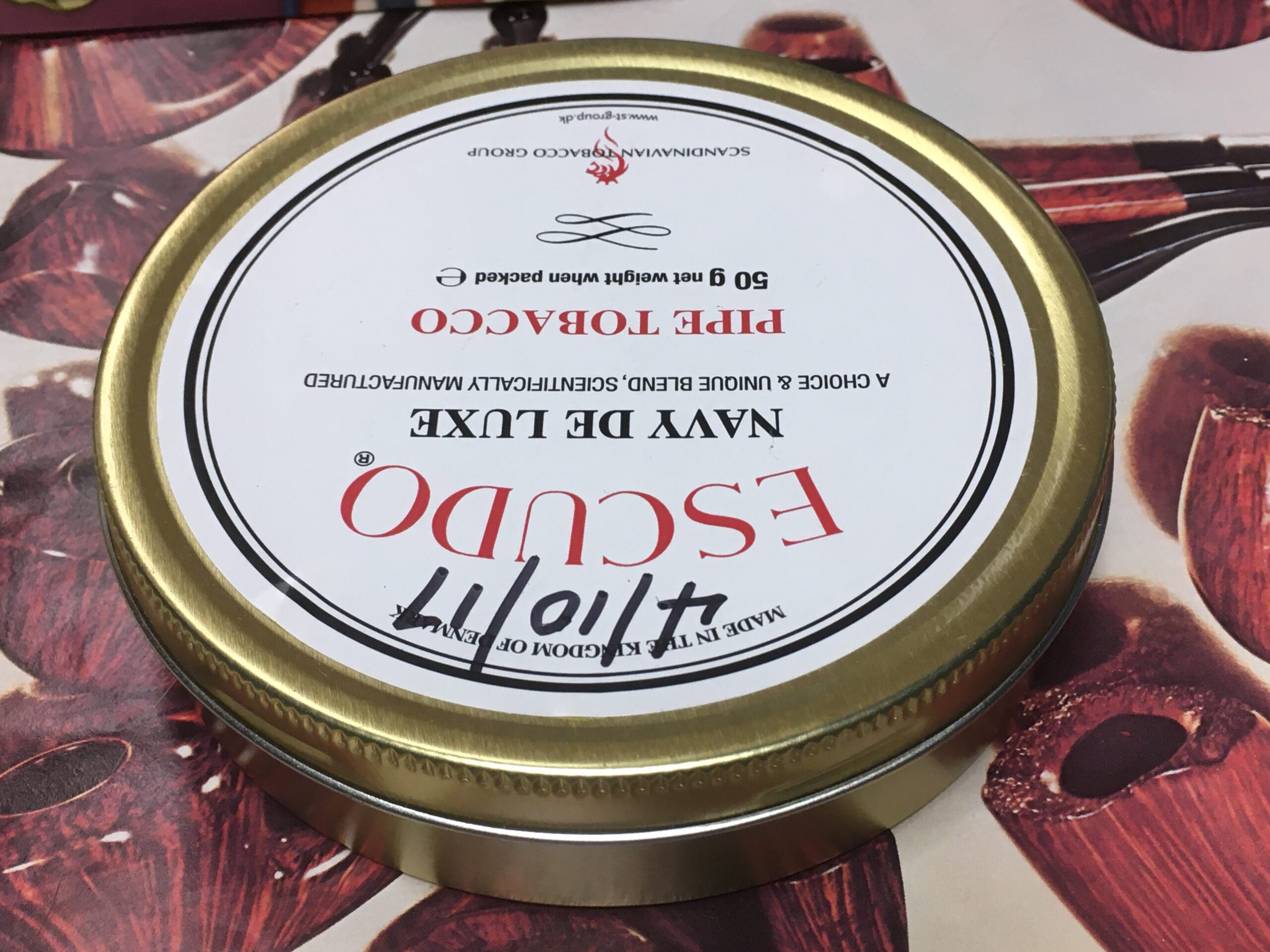 Escudo Navy De Luxe Pipe Tobacco (2017) 50g - Sealed Tin. Dated in Sharpie when it arrived from the supplier in 2017.