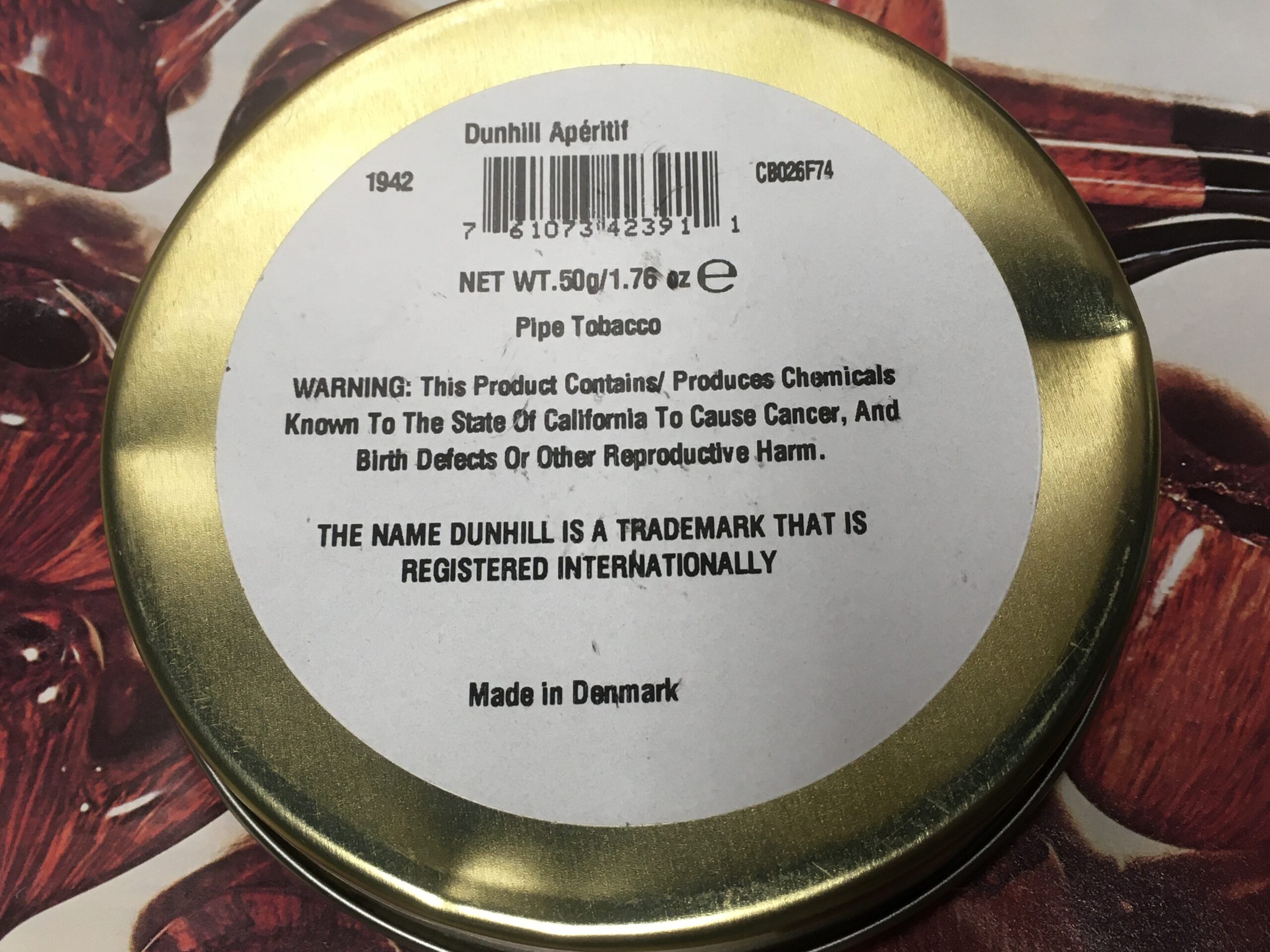 Original Dunhill The Aperitif Pipe Tobacco (2018) 50g - Sealed Tin. Dated in Sharpie when it arrived from the supplier in 2016.