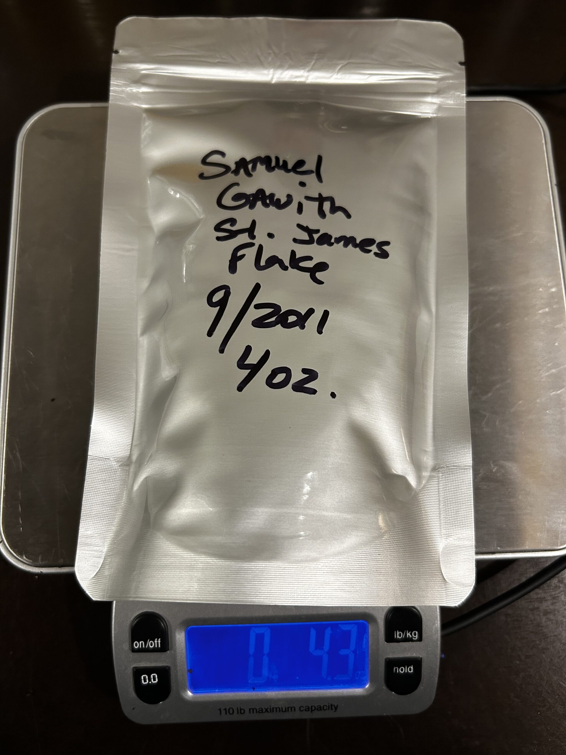 2011 Samuel Gawith St. James Flake- 4 oz; 14 years of aging. It’s aged to a very dark brown and is an amazing smoking blend right now. Don’t miss out