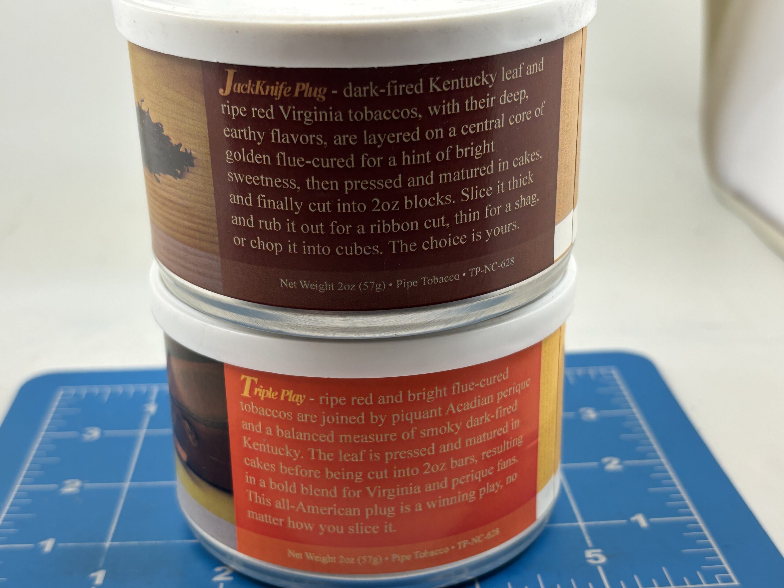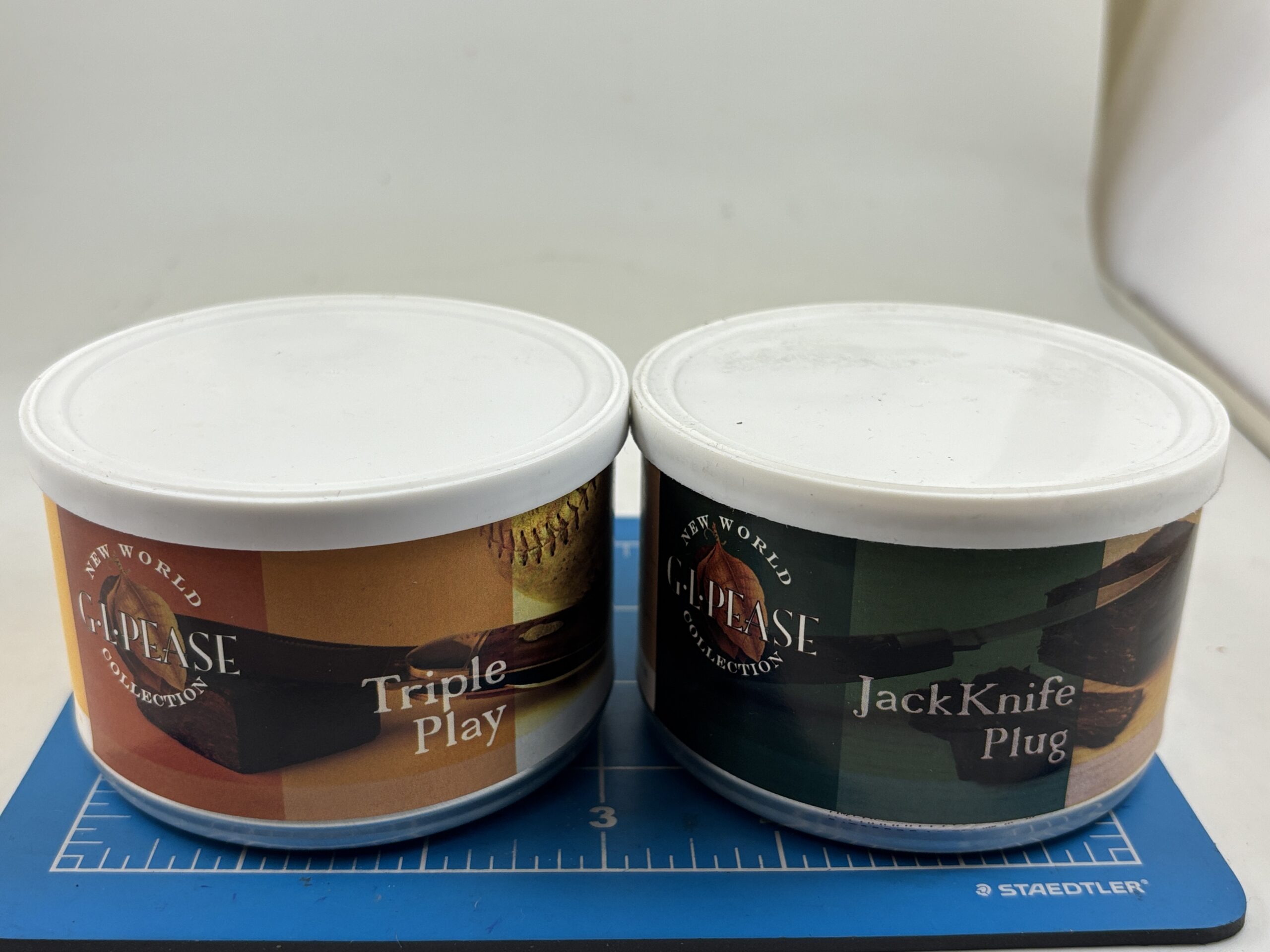 Lot of 2 Very Nice Sealed G.L. Pease 50g. Tobacco Tins - Triple Play & Jack Knife Plug