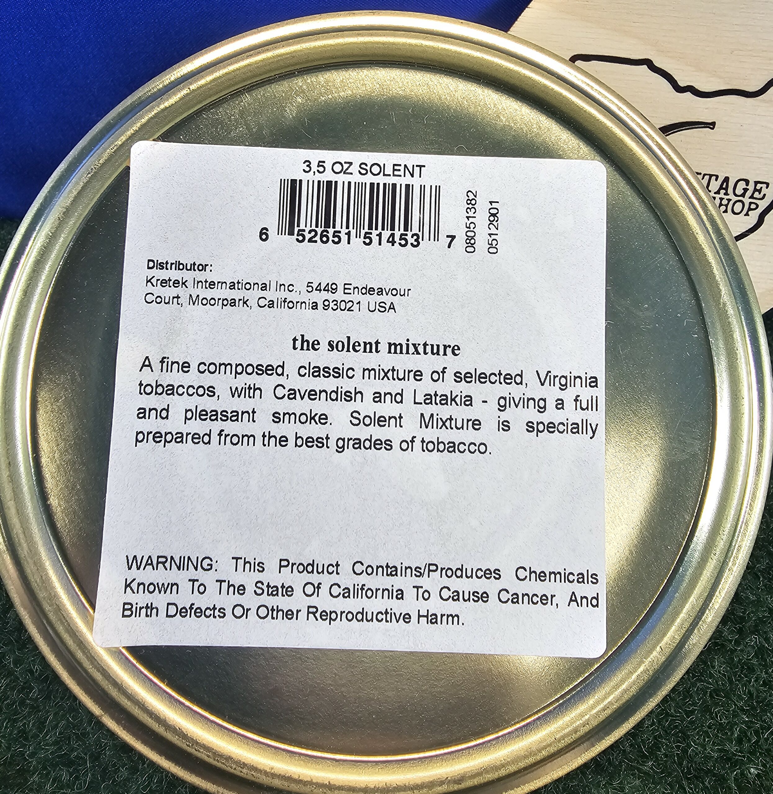 The oldest MacBaren blend (before, well, you know...), Solent (also known as the English Mixture), is a blend of Virginia, burley, and Syrian Latakia. The production date tells us this was made in 2005, giving nice age to a tobacco no longer with us.