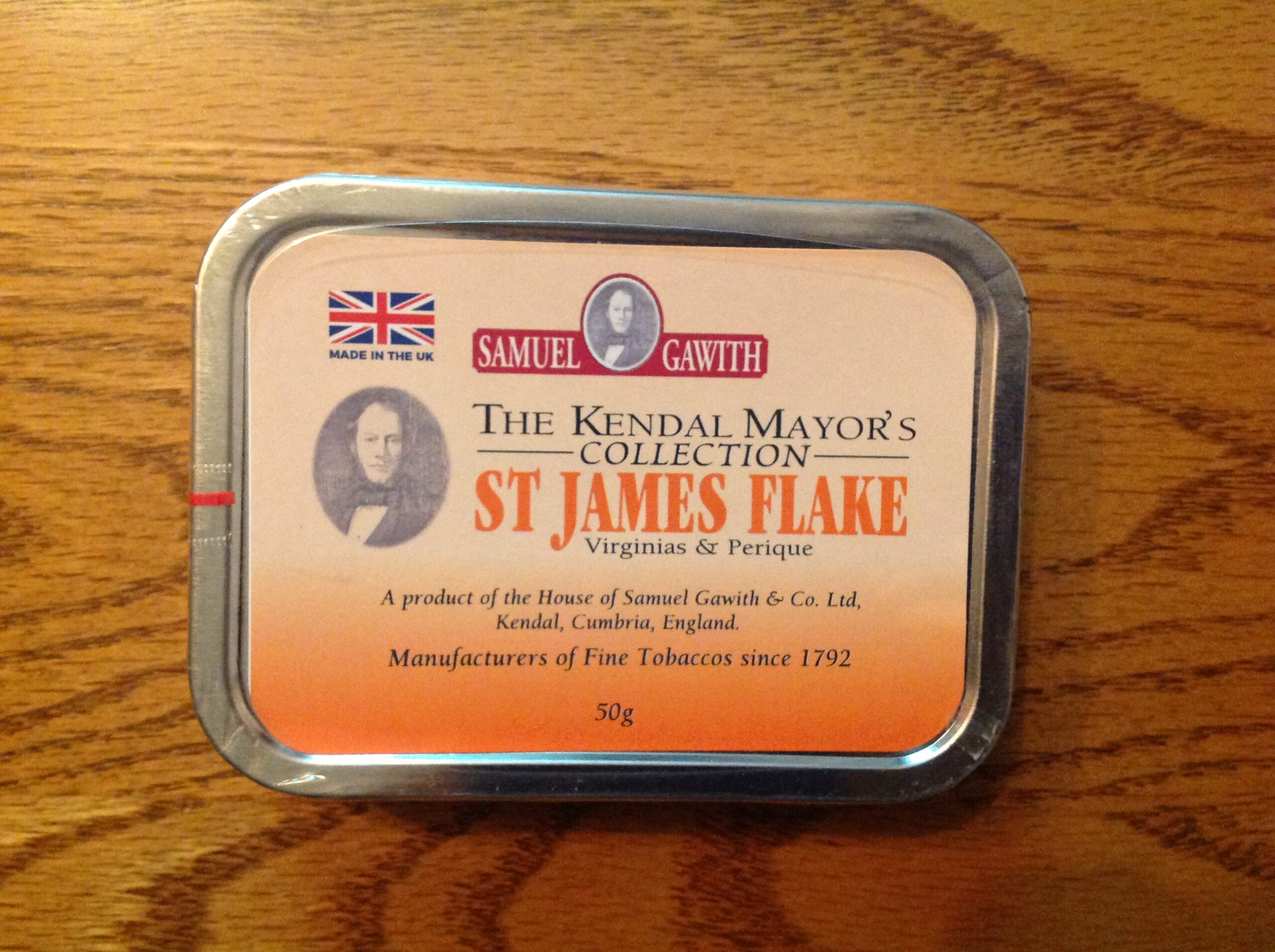 One 50g tin of Samuel Gawith St. James Flake (purchased Spring 2024)