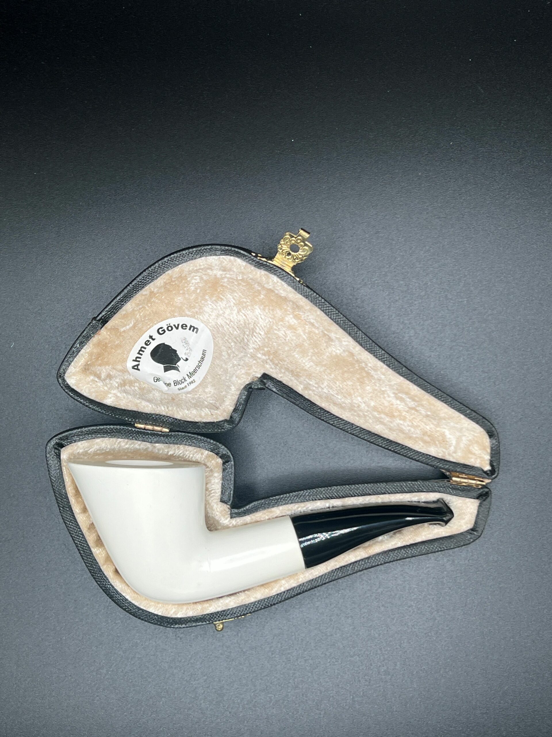 Short Horn Nose Warmer made with premium block meerschaum, including a fitted case by Ahmet Gövem.