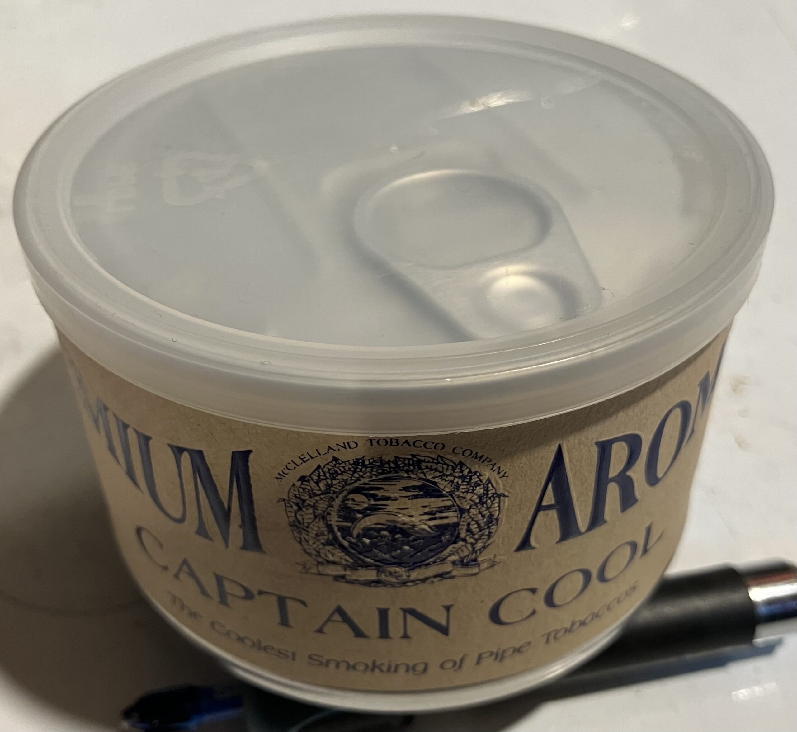 The McClelland Captain Cool Premium Aromatic pipe tobacco in 50g size sealed tin.