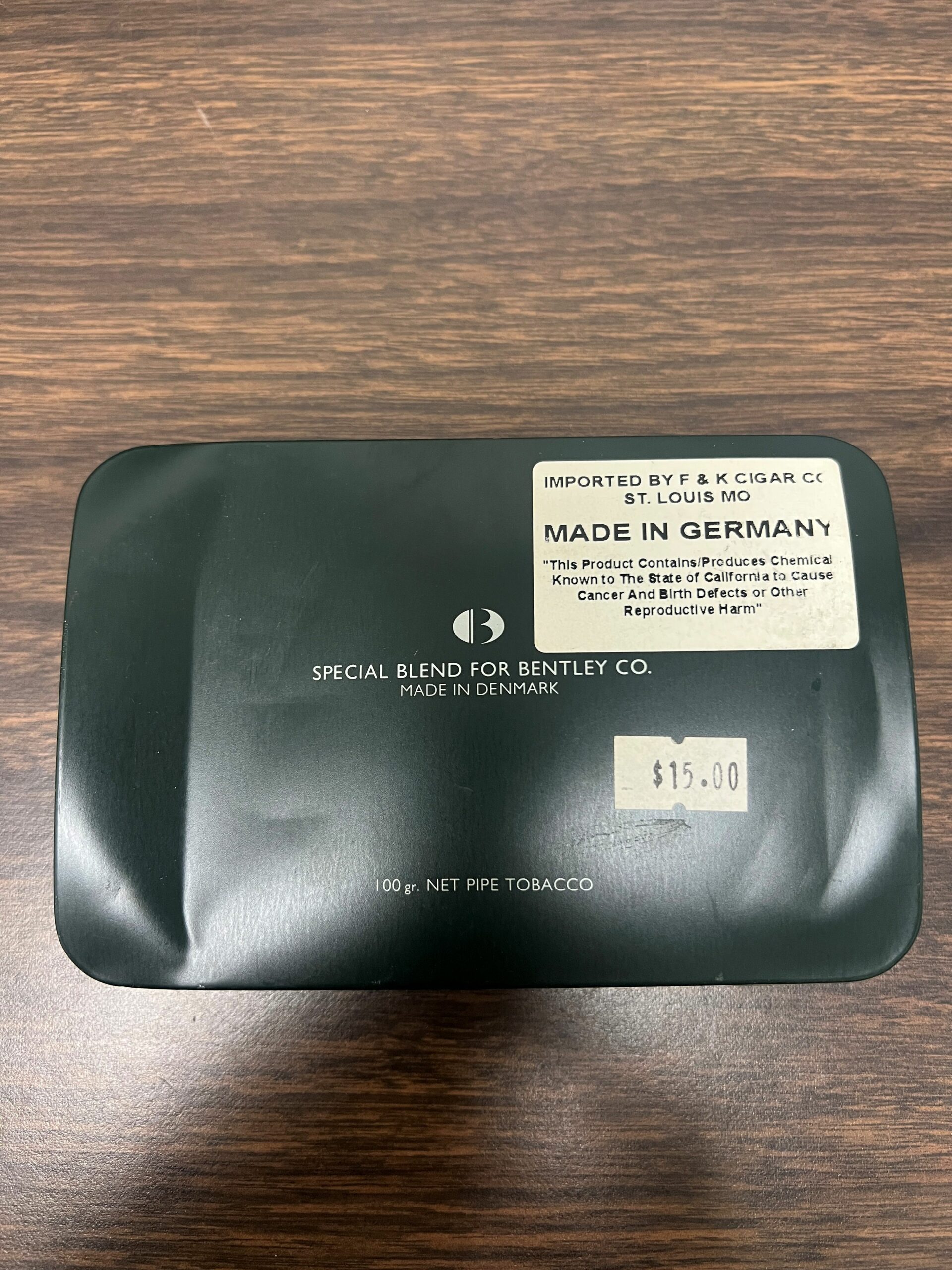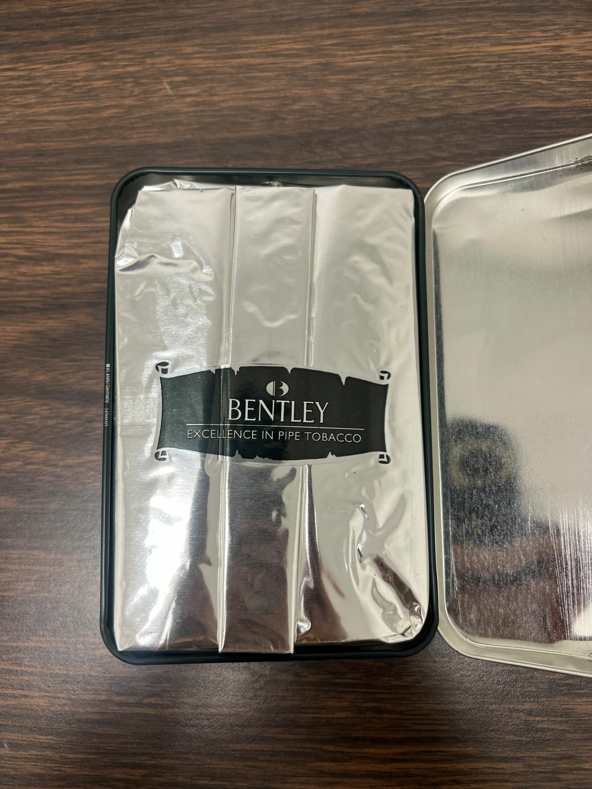 100g sealed tin of Bentley pipe tobacco, imported by F & K Cigar Co.