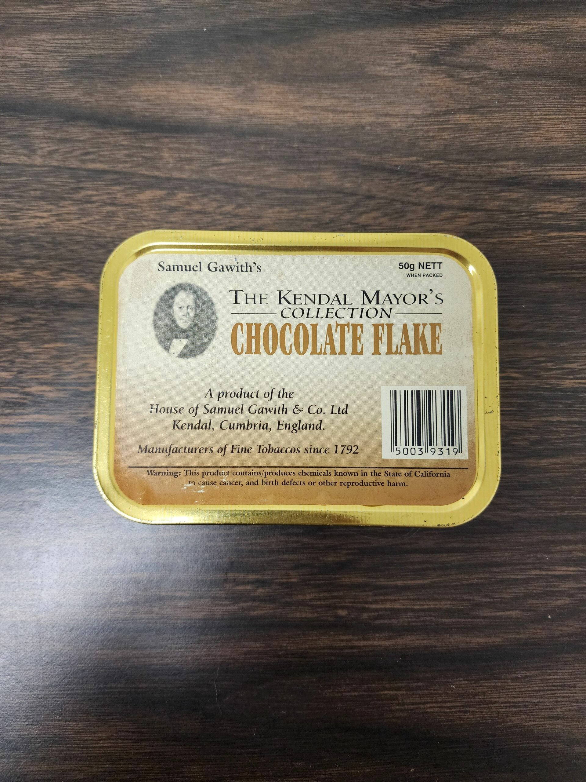 50g sealed square tin of Samuel Gawith's Chocolate Flake from the Kendal Mayor's Collection.