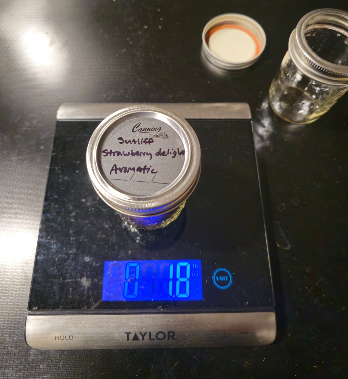 Weight of tobacco is shown on the scale in picture. The scale was set to zero with the weight of the jar and lid accounted for, so the shown weight is just the tobacco in the jar.