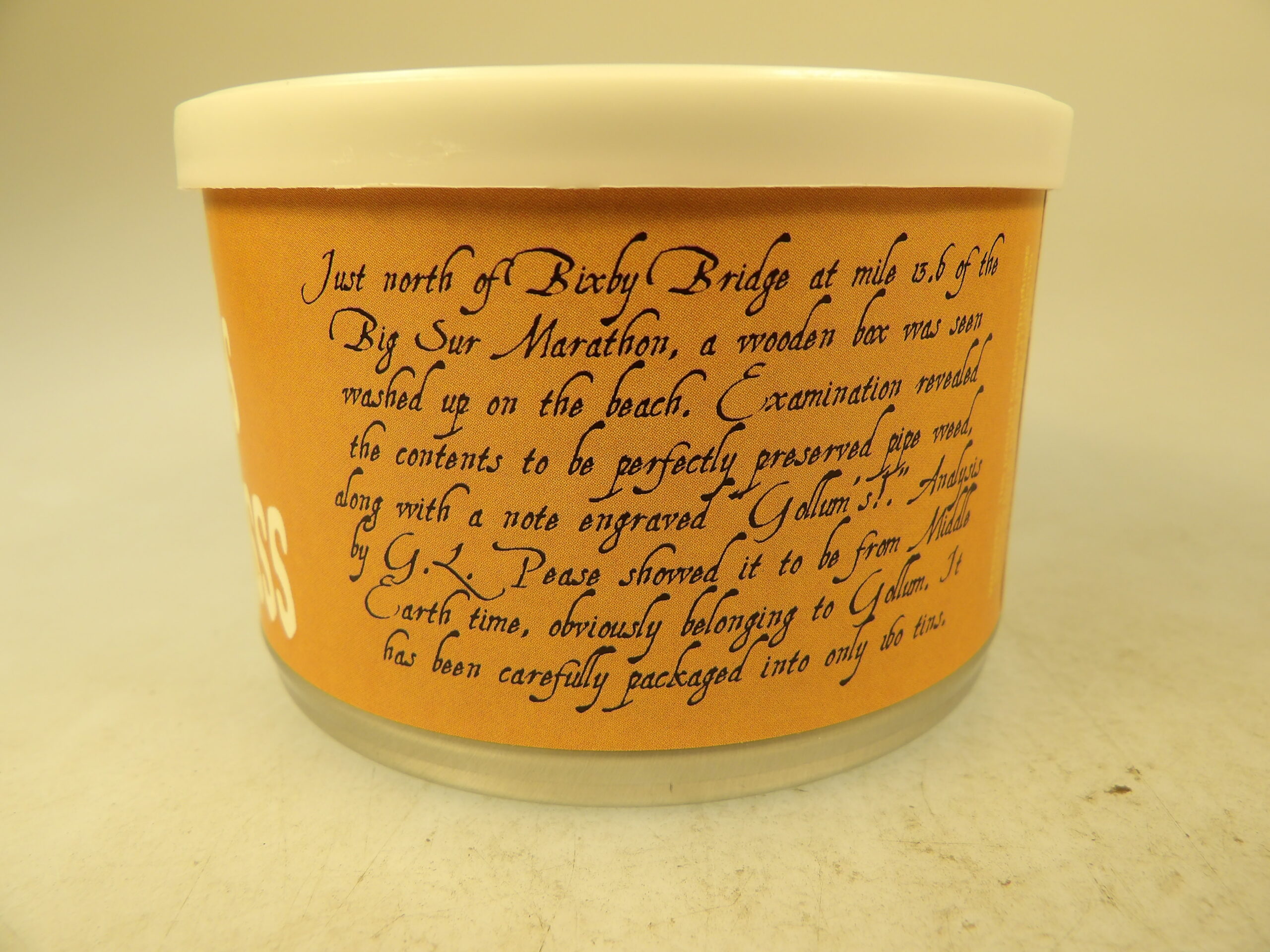 DESCRIPTION: Here is an auction for sale. It is a Vintage Collectible 12 Years Old G.L. Pease NASPC Gollum’s Precioussss 2 oz’s Sealed Pipe Tobacco. This tin is sealed and has never been opened. The tin is a limited blend tin produced for this year only during the NASPC annual show. The Tobacco contained within is an English Blend using Latakia, Oriental/Turkish, Virginia Mix.