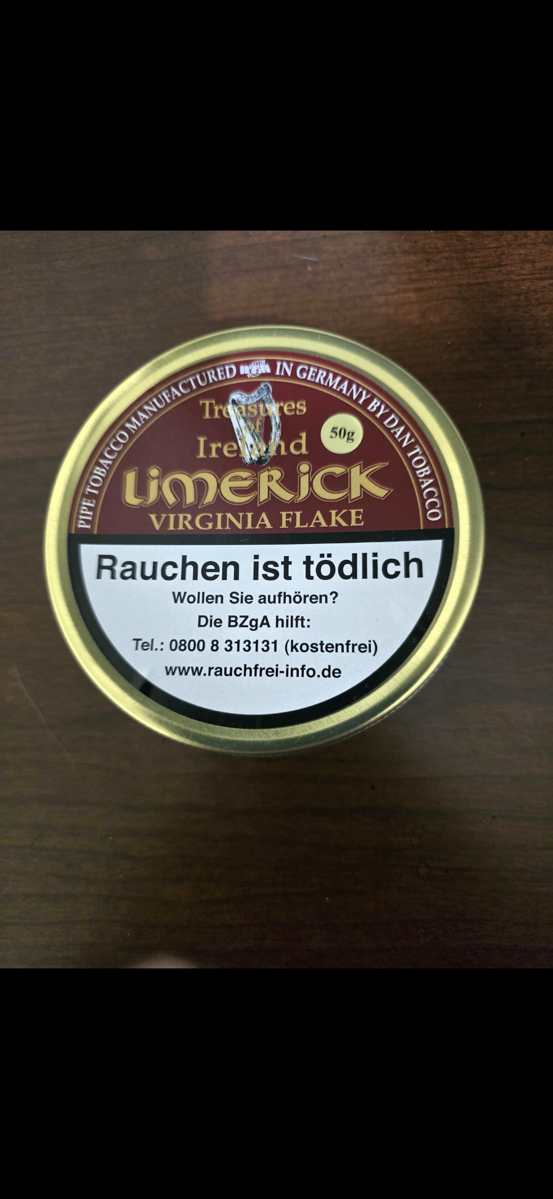 One sealed tin of Treasures of Ireland: Limerick is a rich Virginia/Perique flake with 5% Perique, offering a slightly cooler mixture for the palate and a dark, smooth taste. Kept in a climate controlled environment.
