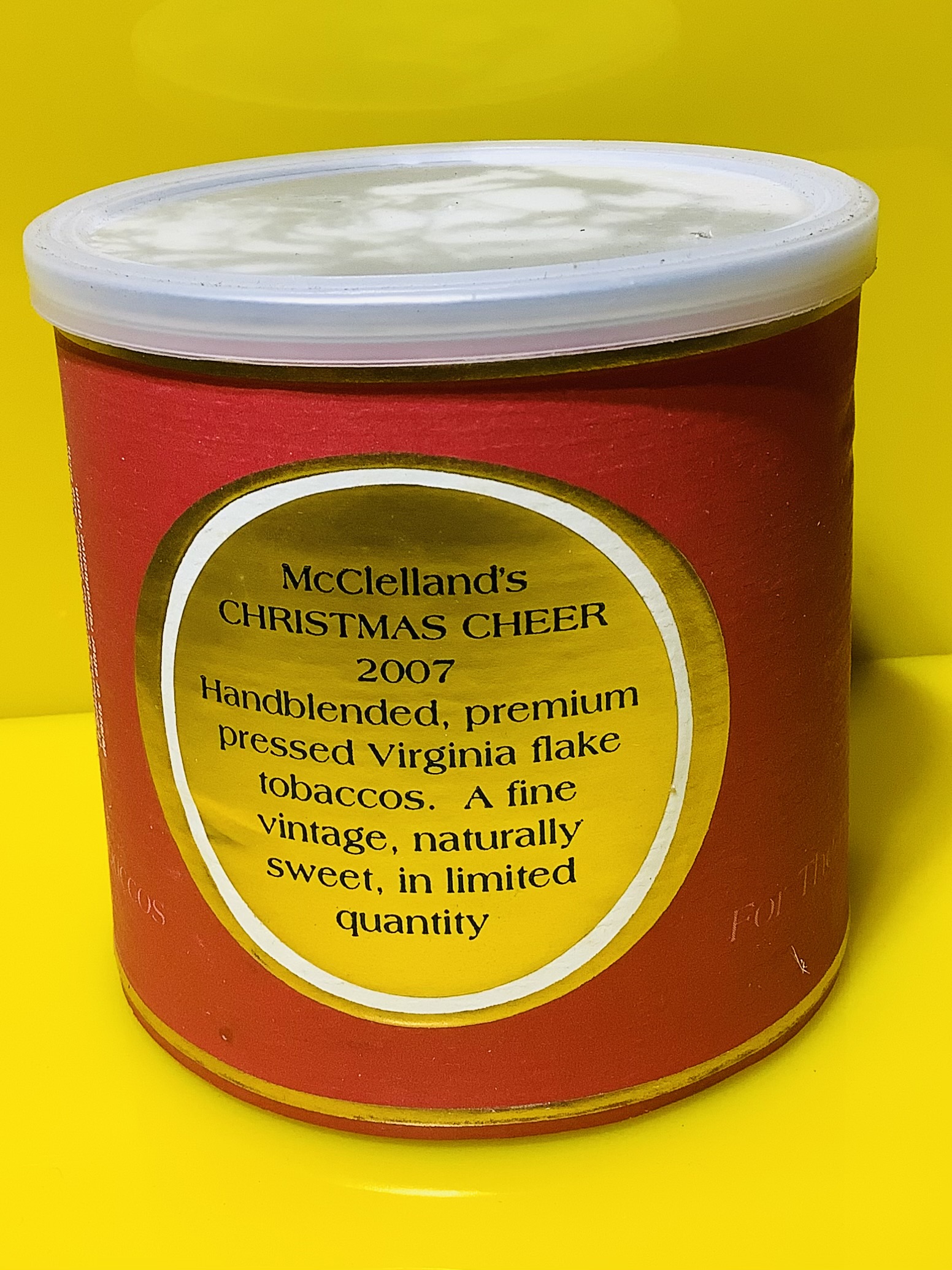 Hand blended, premium pressed Virginia flake tobaccos. Vintage red,ripe and mellow from the crop of 2001. Natural sweetness and zest. In limited quantity.