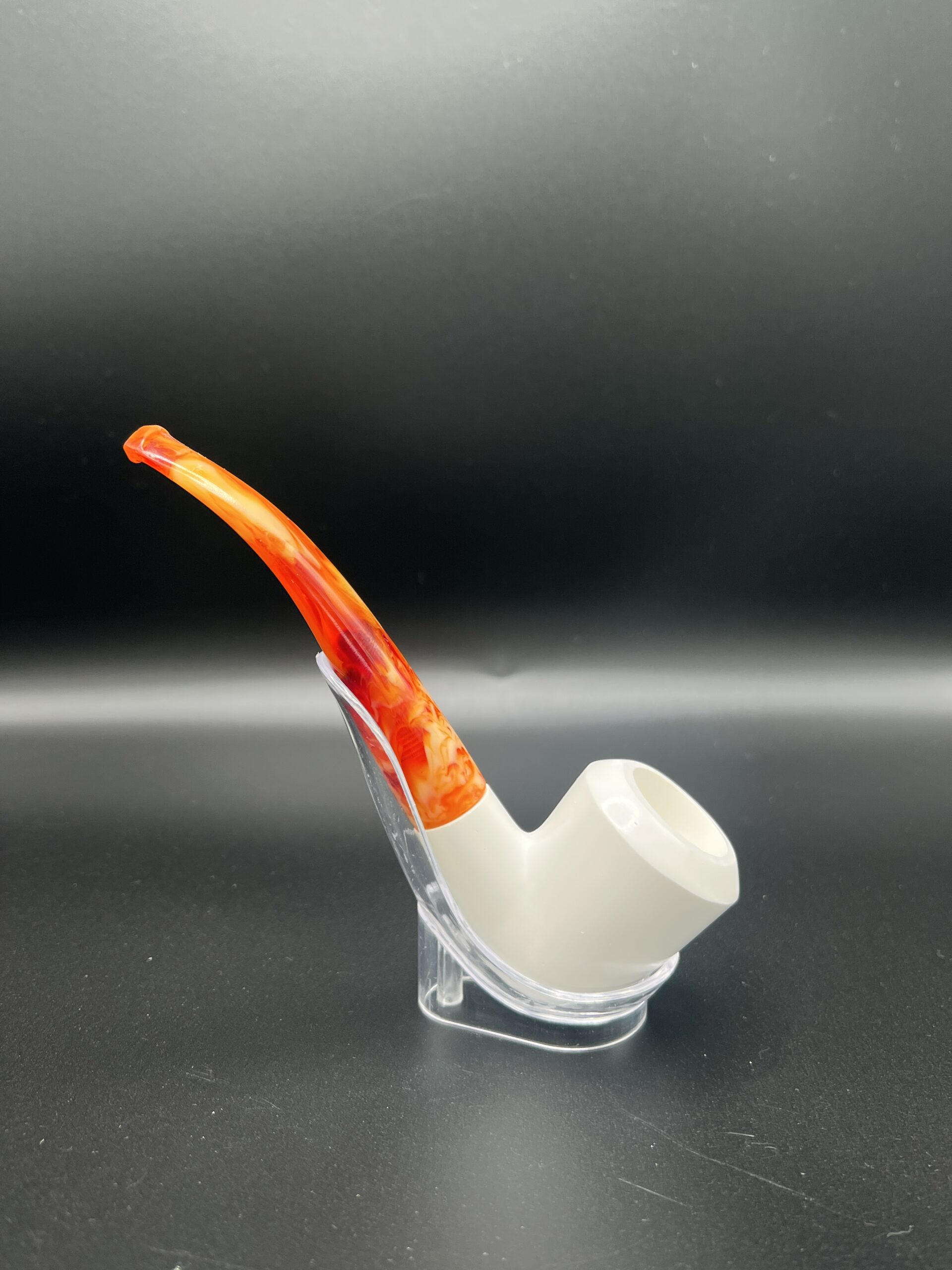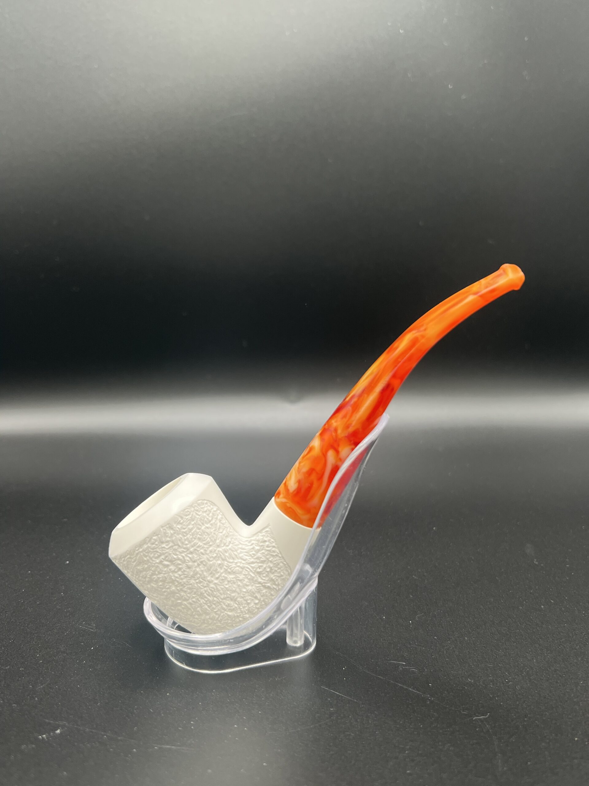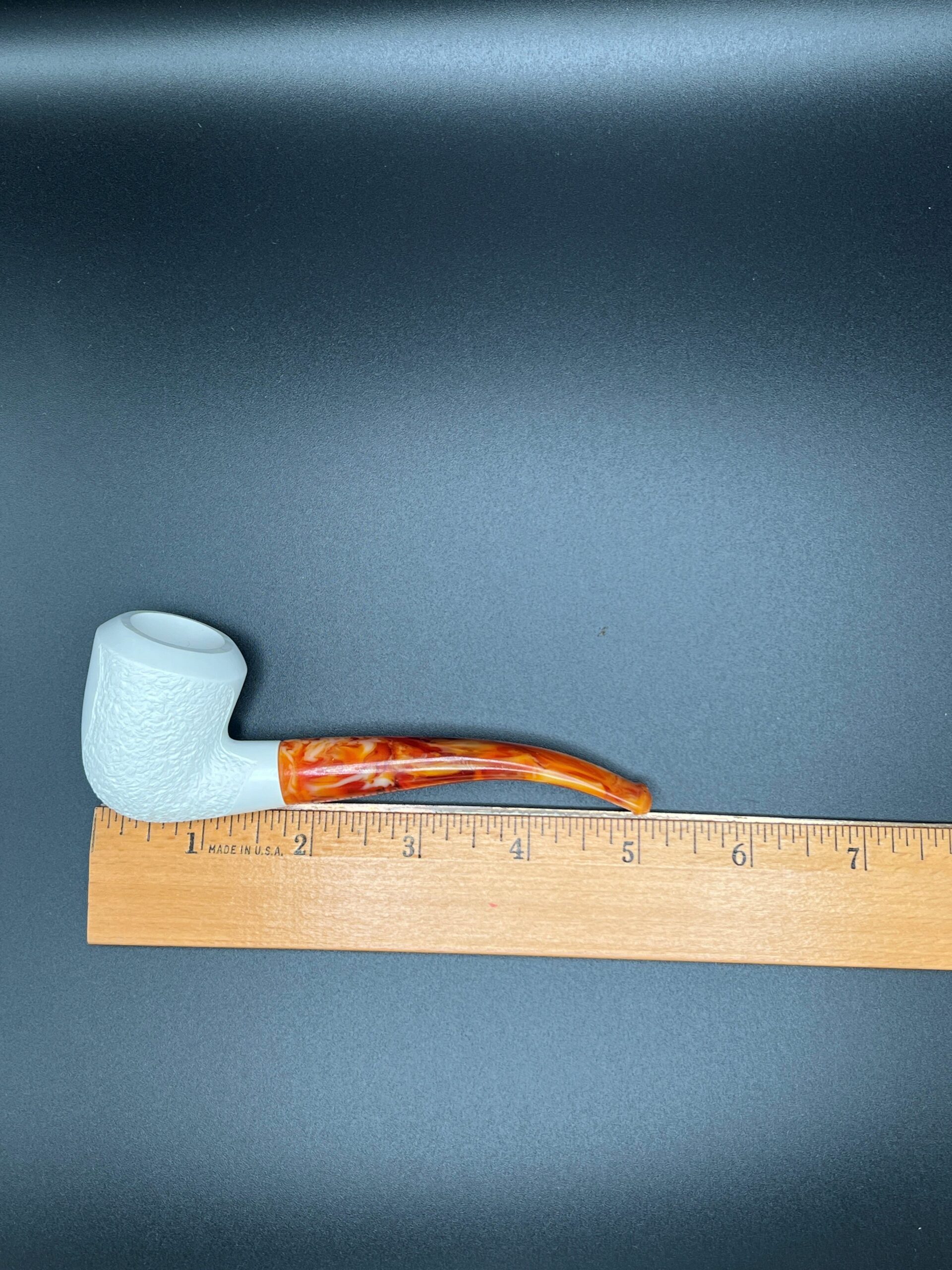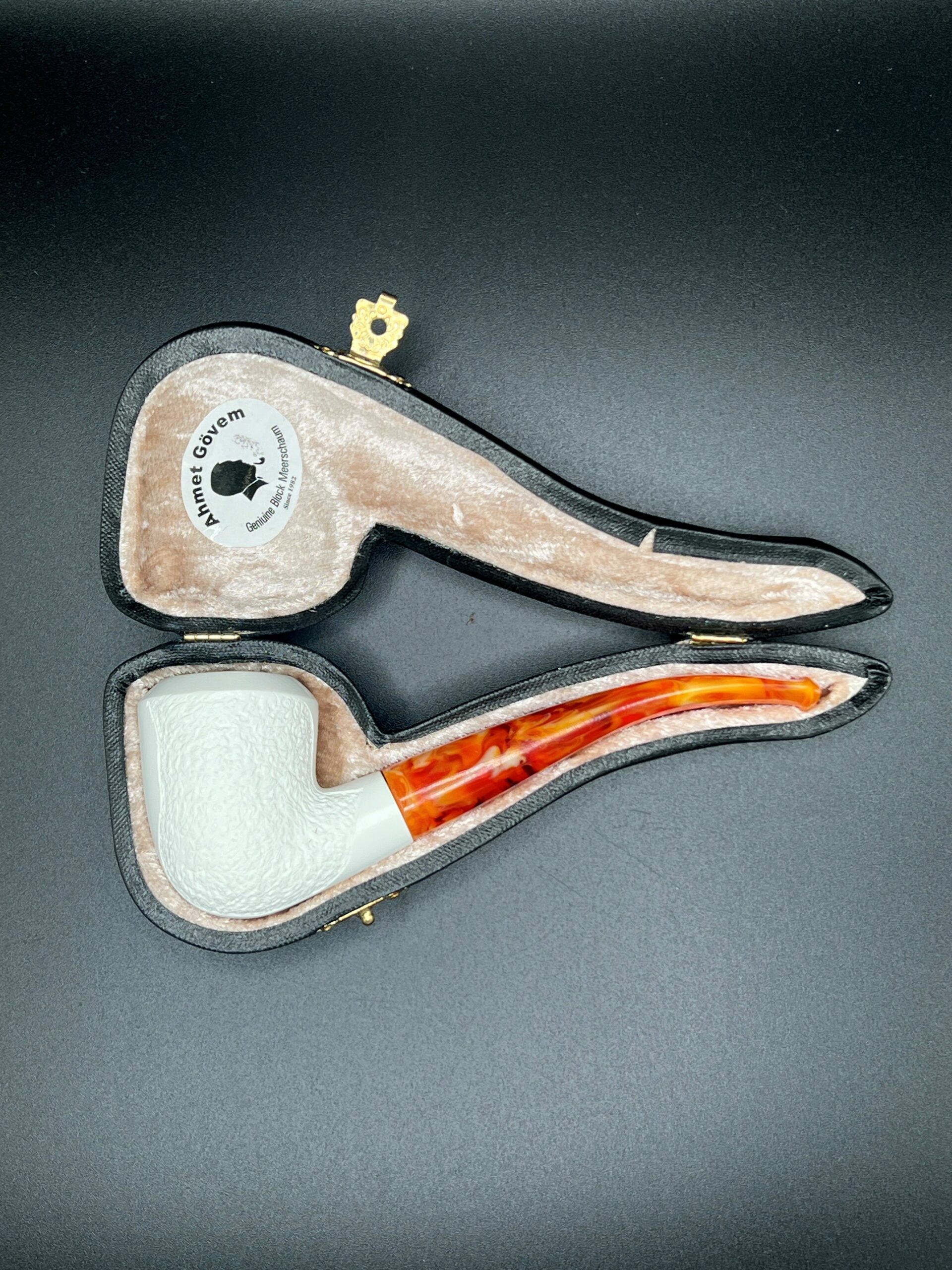 Dublin premium block meerschaum pipe with a rusticated design, marbled stem, and fitted case made by Ahmet Gövem.