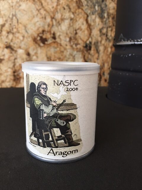 2oz tin. Produced by GL Pease for the 2004 NASPC Pipe and Tobacco show. Hobbit themed. Limited production of 400 tins.
