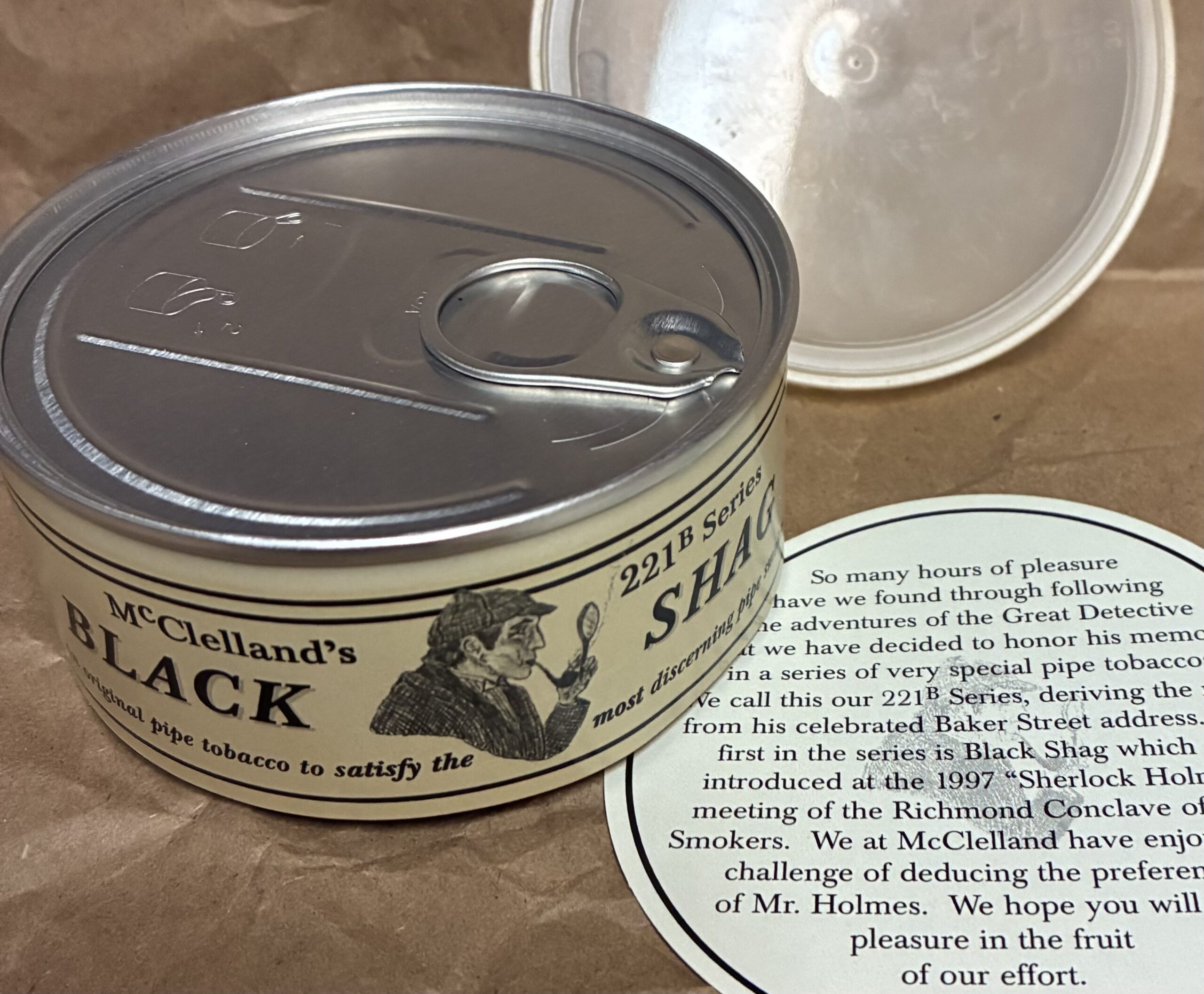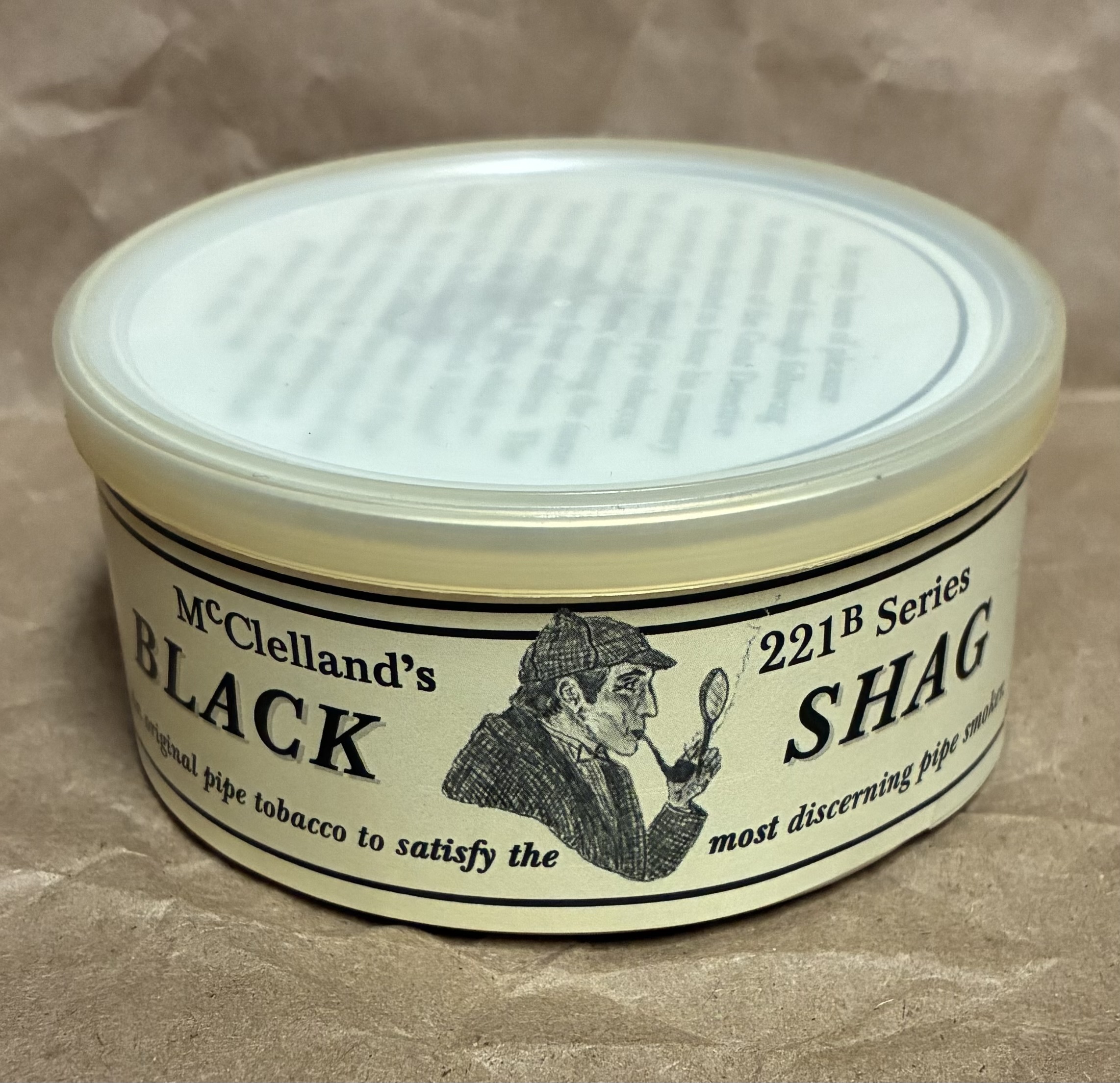 Vintage McClelland Black Shag Pipe Tobacco 50g Sealed Tin. One of the 221B Series from 2014. Sealed and kept indoors.