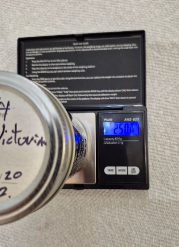 1 jar containing almost 2 ounces of Sutliff's Match Victorian. This was jarred in May 2020. It is out-of-production.