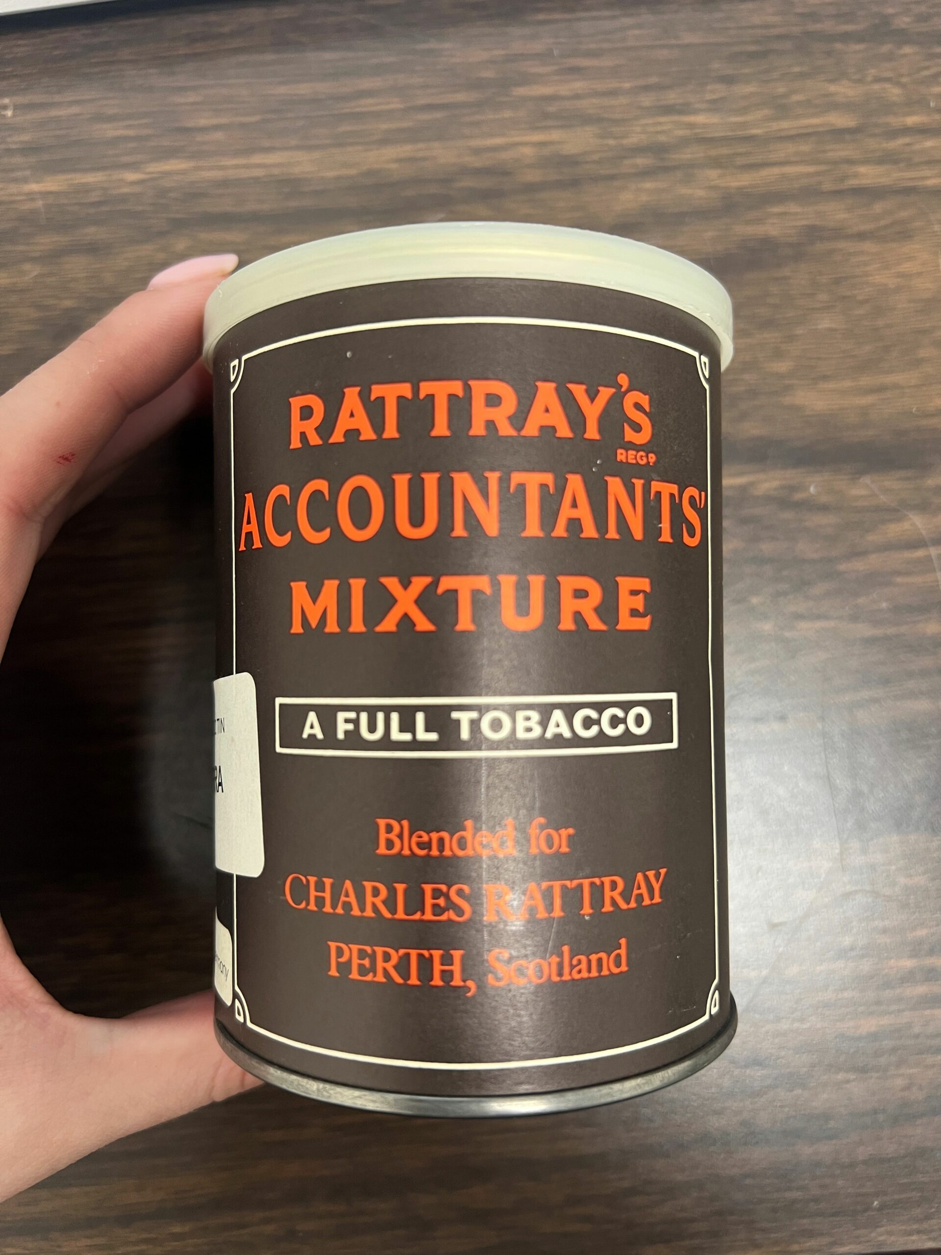 4oz sealed tin of Rattray's Accountants Mixture pipe tobacco from 2001.