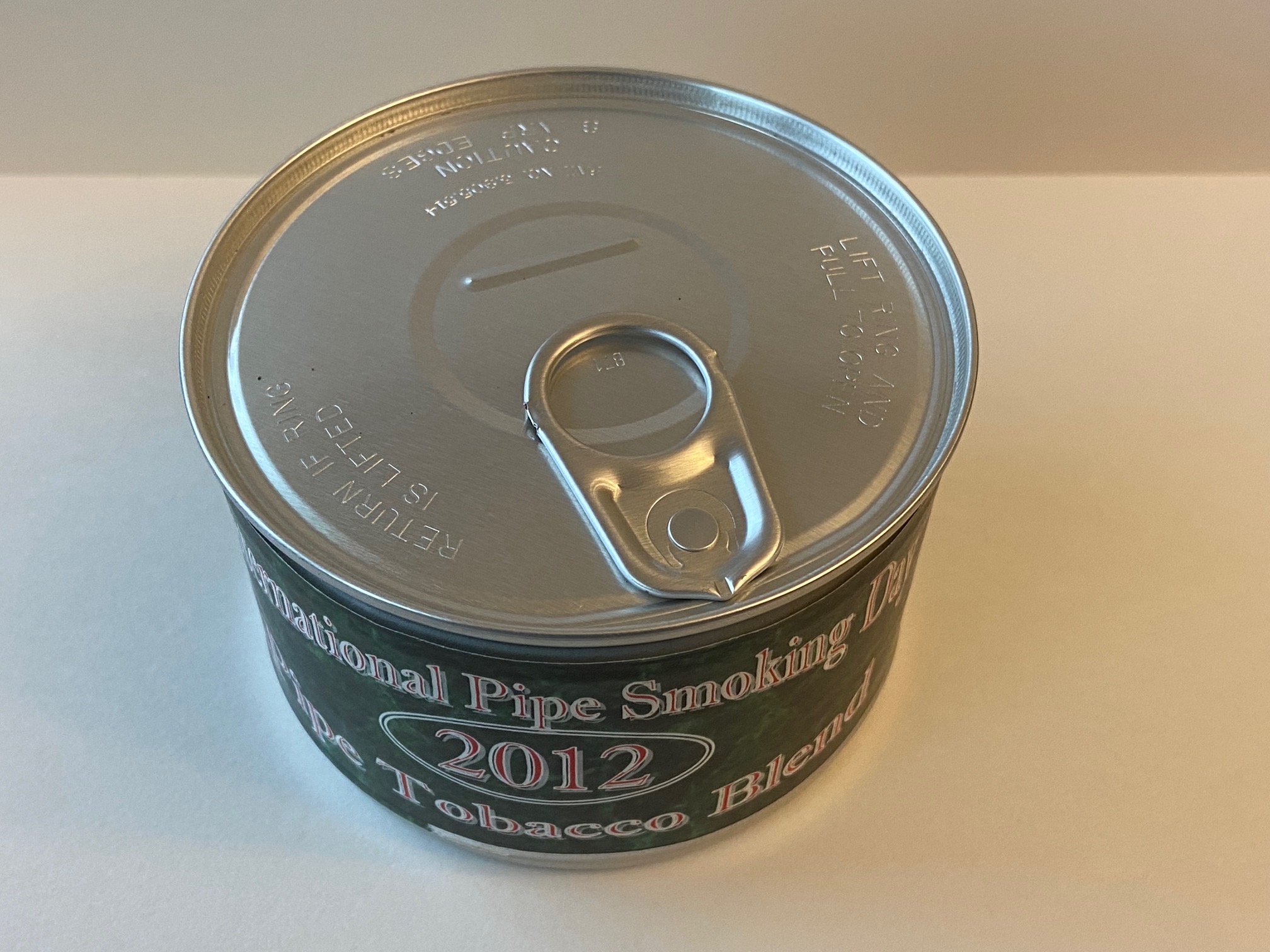 Unopened 2 ounce tin of 2012 Hearth and Home International Pipe Smoking Day Tobacco Blend also called CERBERUS.