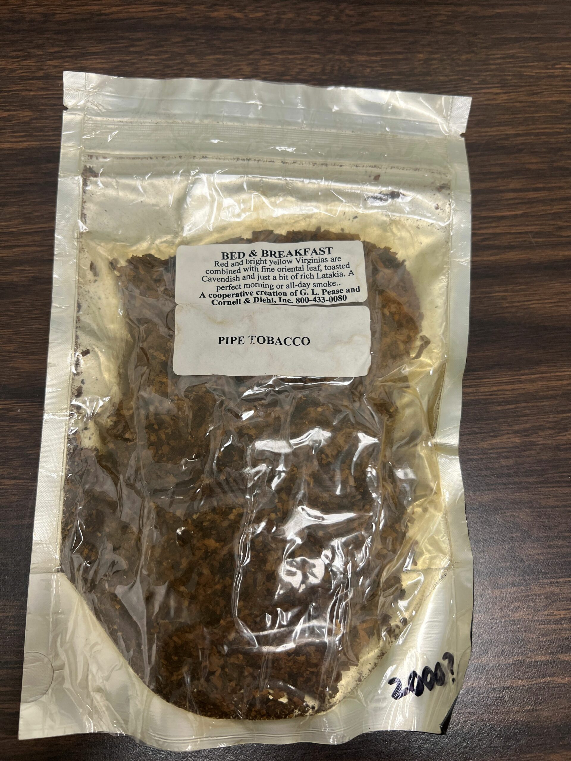 4oz sealed bag of Two Friends' Bed & Breakfast pipe tobacco. The contents of the bag may need rehydration.