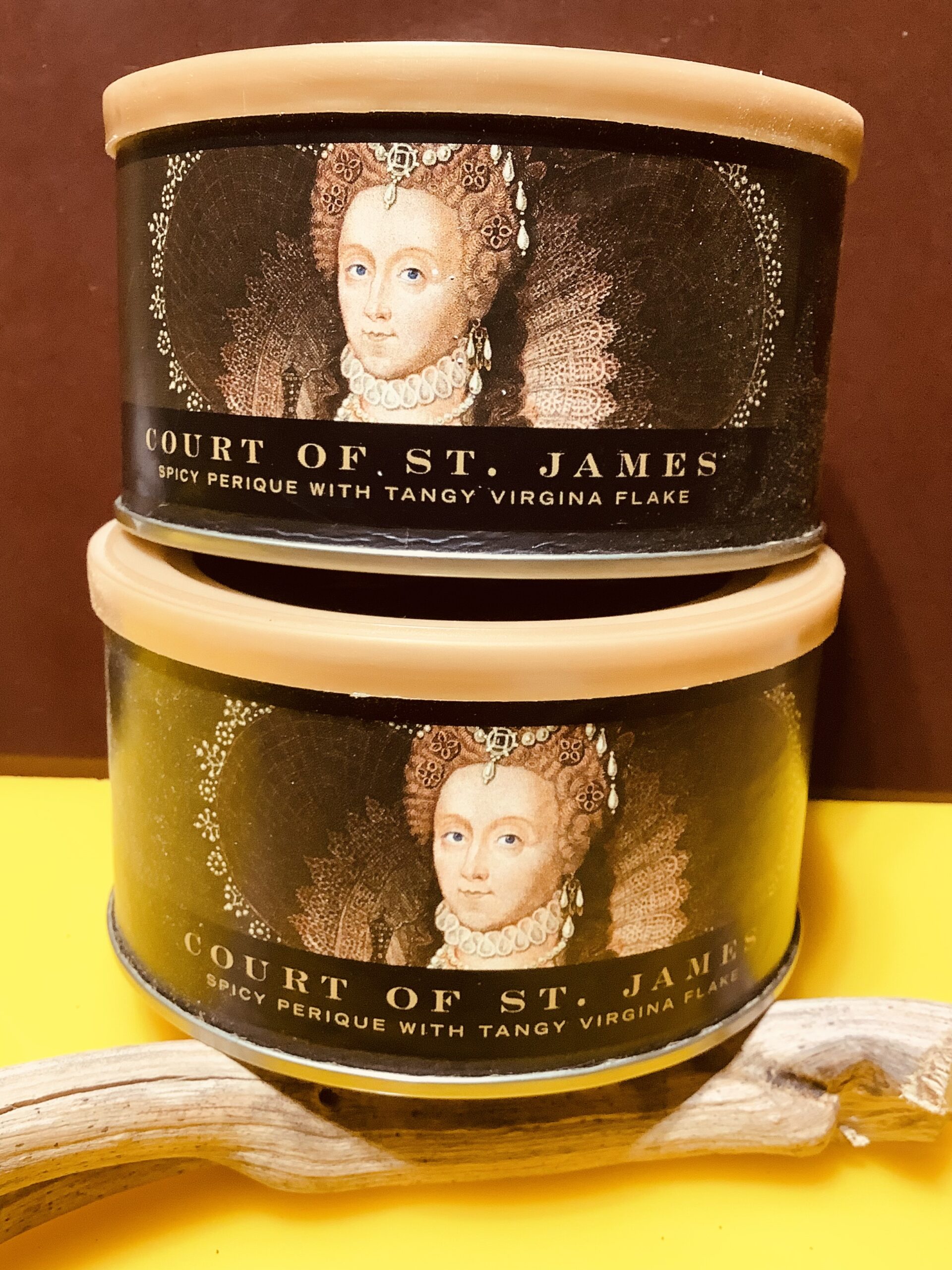 Court of St. James is a spicy combination of a broken-flake Virginia and peppery Louisiana Perique, with a tiny whisper of Latakia. The result is a zesty blend, bursting with flavor.