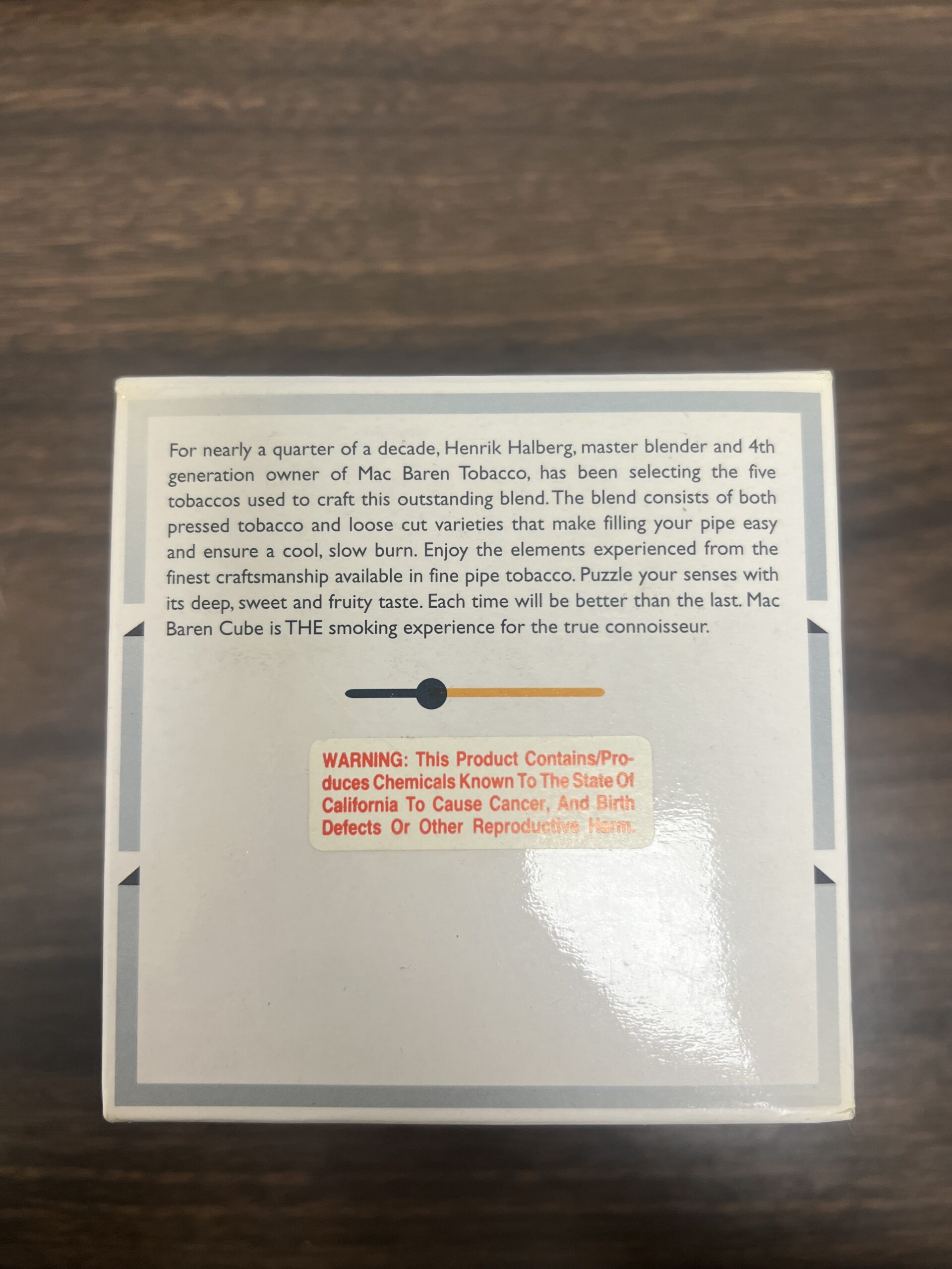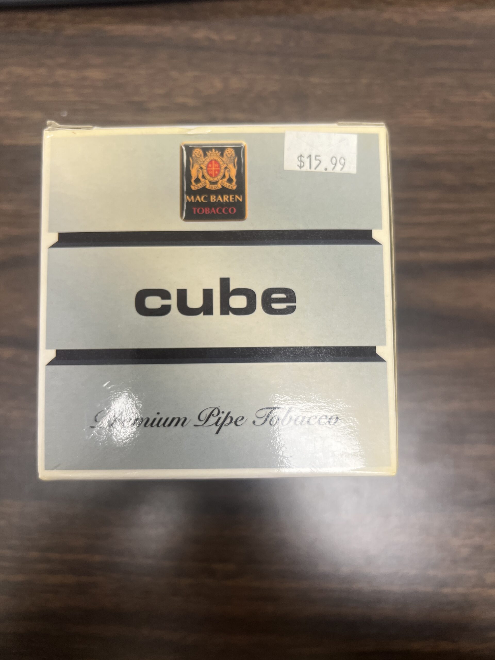 3.5oz sealed box of Mac Baren's Cube Premium pipe tobacco.