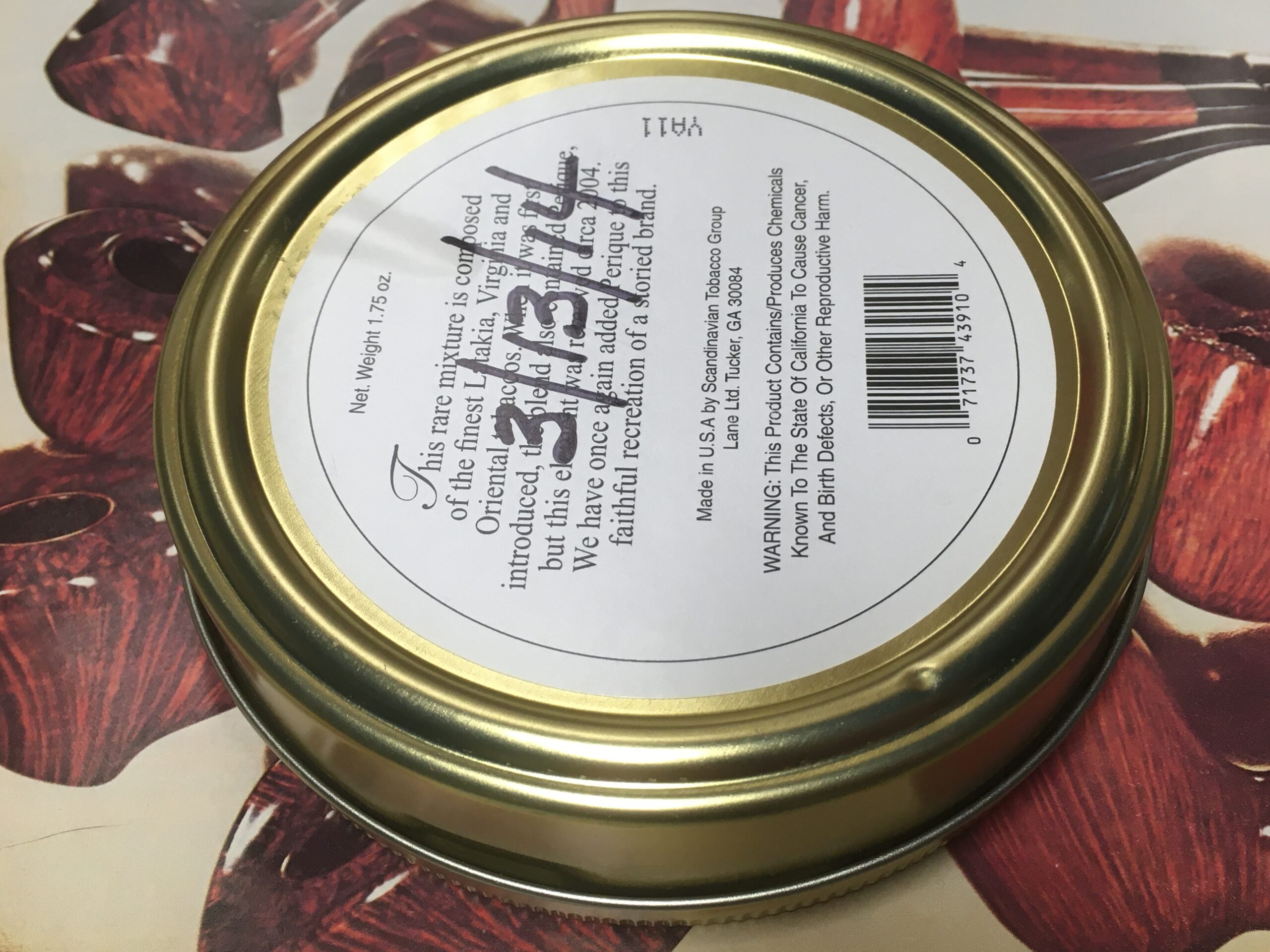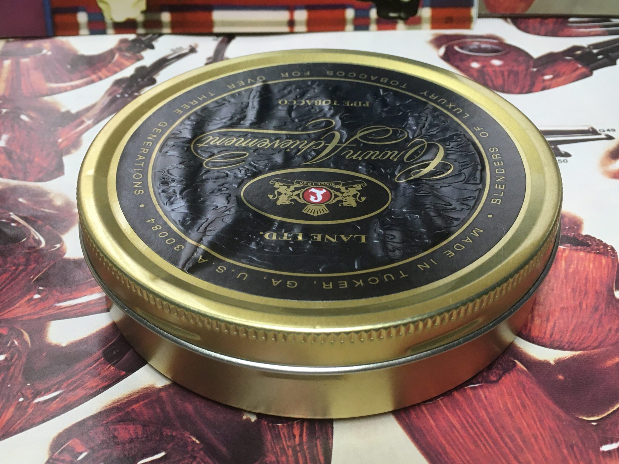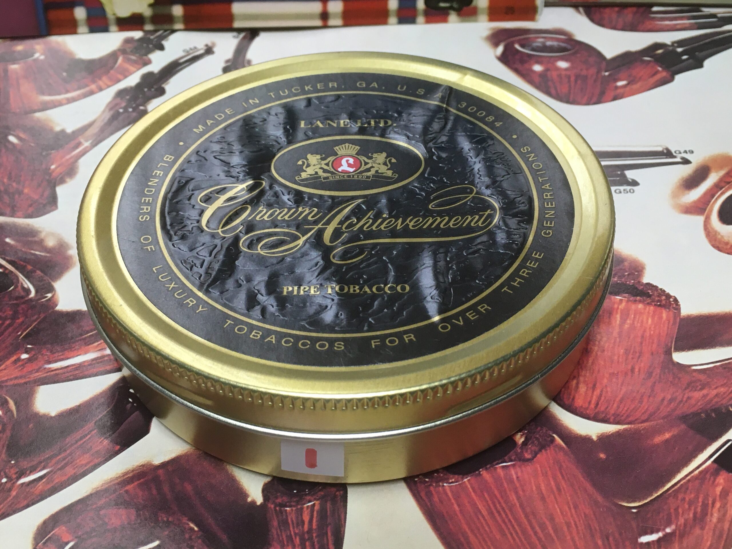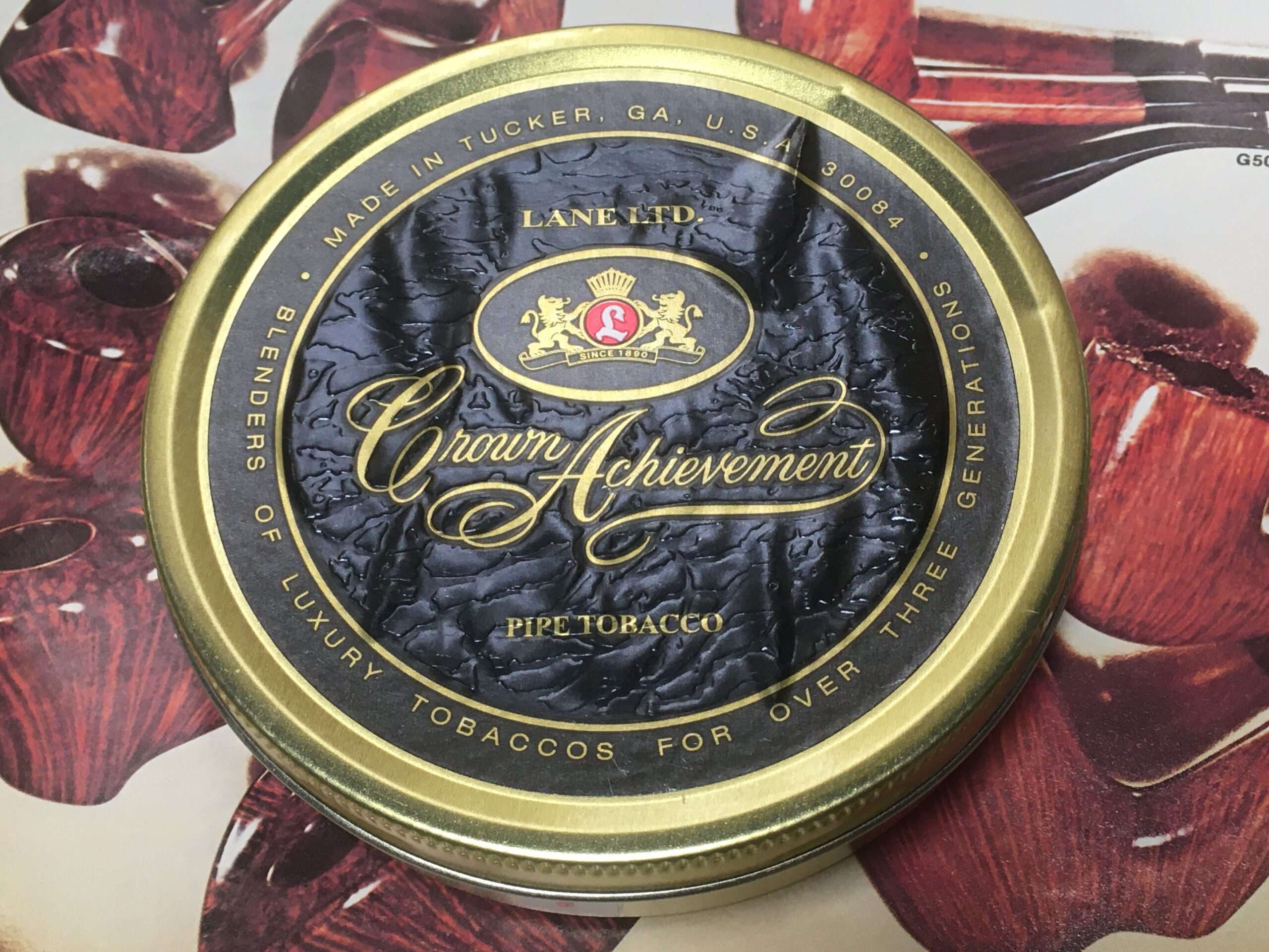 Lane Ltd., Crown Achievement Pipe Tobacco (2014) 1.75oz - Sealed Tin (#1). "This rare mixture is composed of the finest Latakia, Virginia and Oriental tobaccos. When it was first introduced, the blend also contained Perique, but this element was removed circa 2004. We have once again added Perique to this faithful recreation of a storied brand."