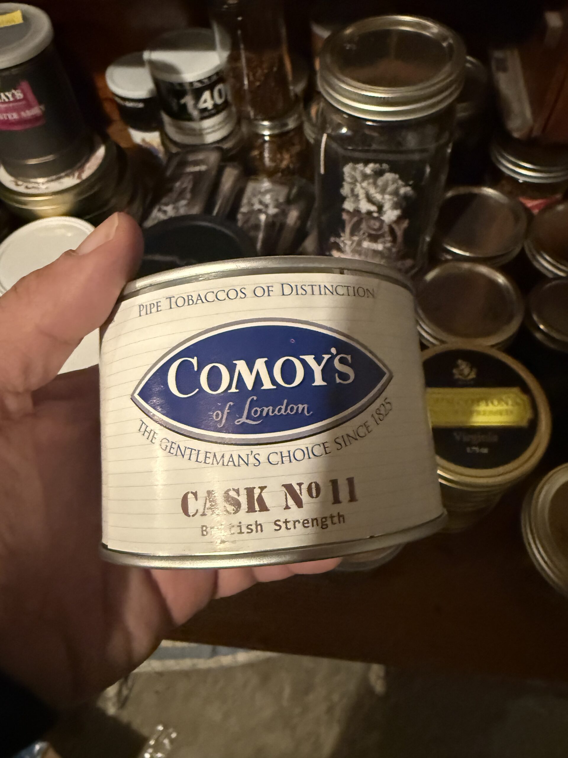 This rare tin is from 2016- kept in a temperature controlled environment- Cask No.11 is one of the hardest to find today. Collectors have considered them “lost blends” of the Orlik-era Comoy’s line….