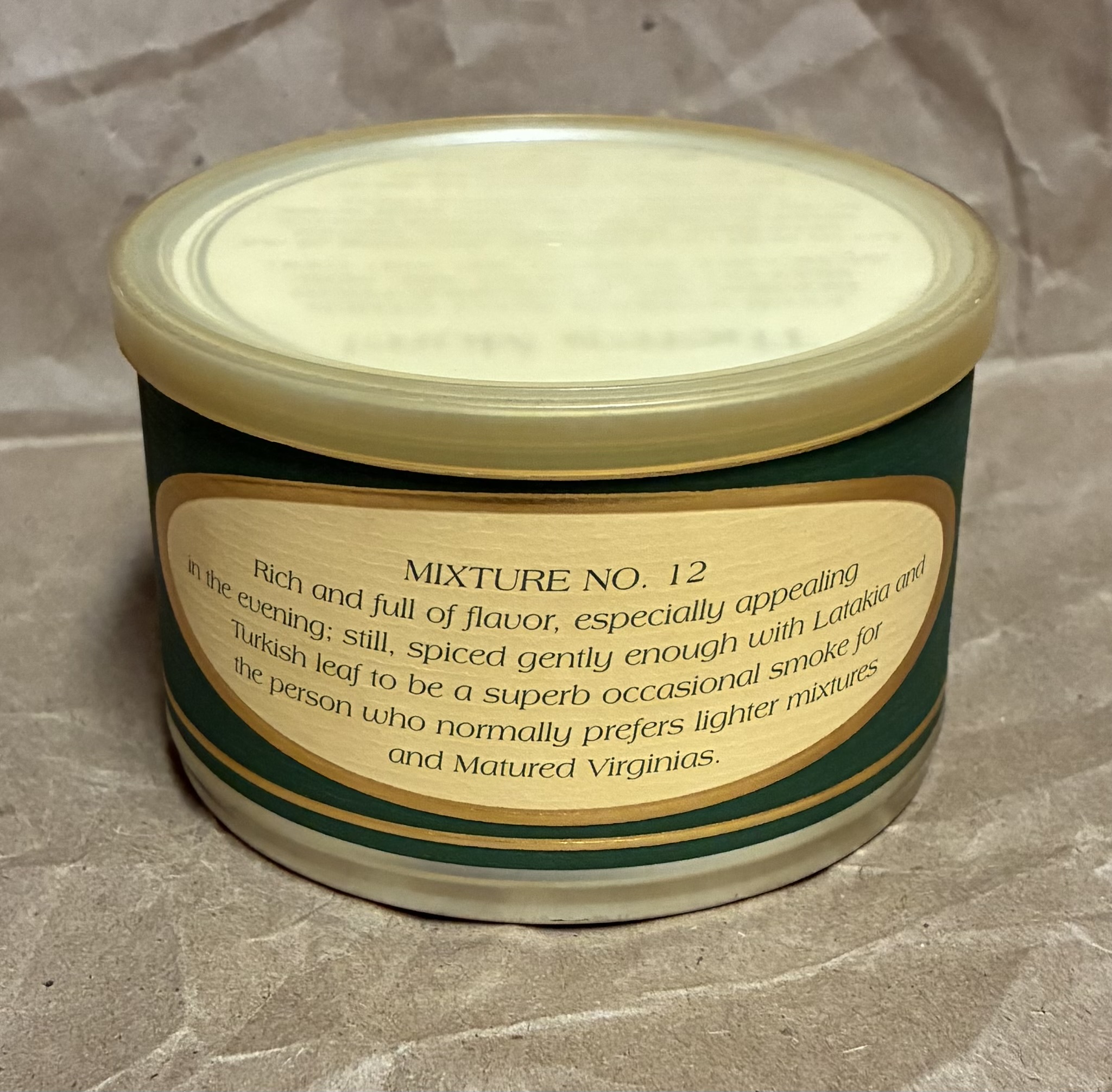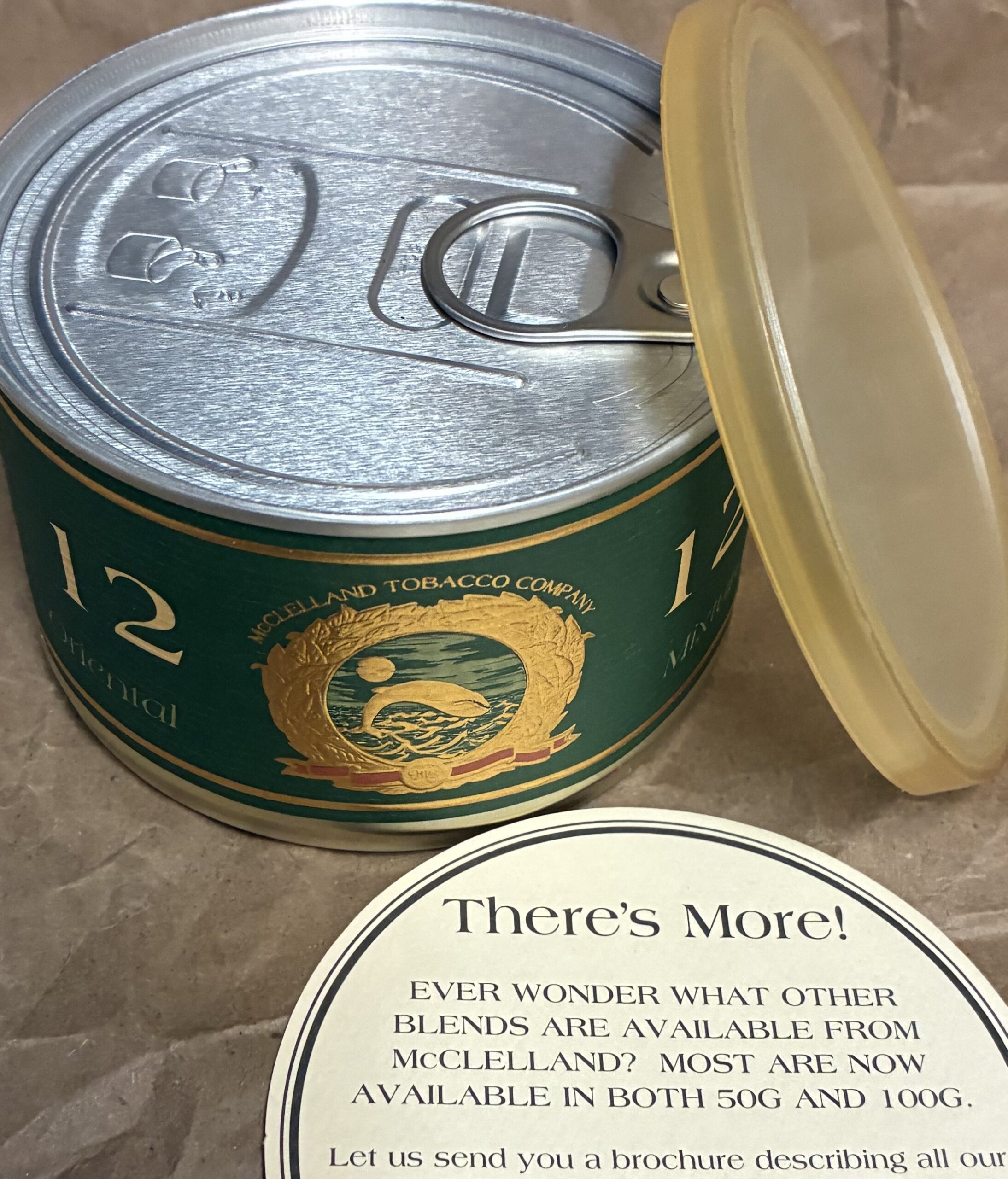 One vintage 50g can of McClelland No. 12 from 1999. Rich and full of flavor, spiced with Latakia and Turkish. Sealed and kept indoors.