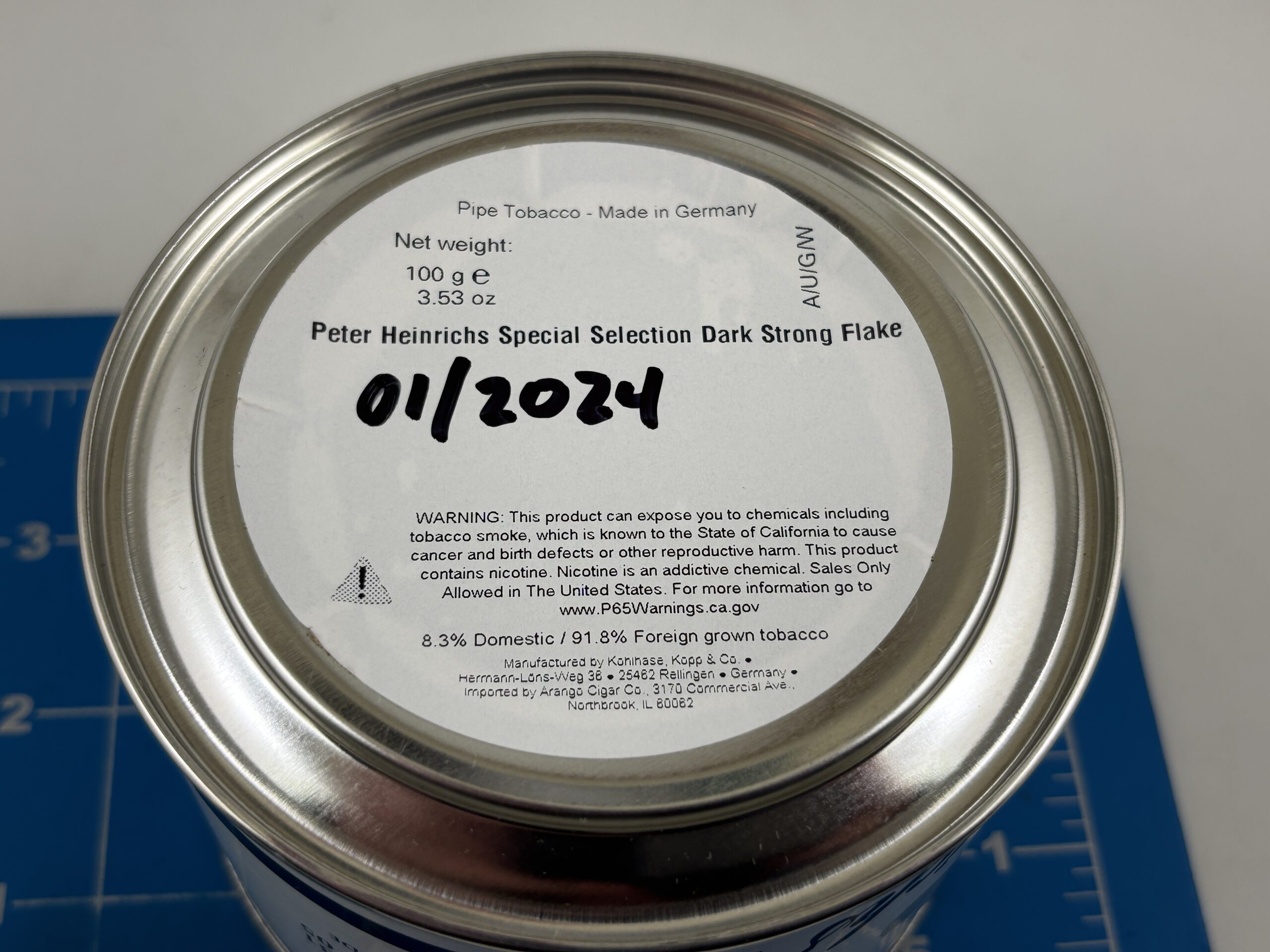 Excellent Sealed 2024 Sealed Peter Heinrichs Dark Strong Flake 100g. Tin