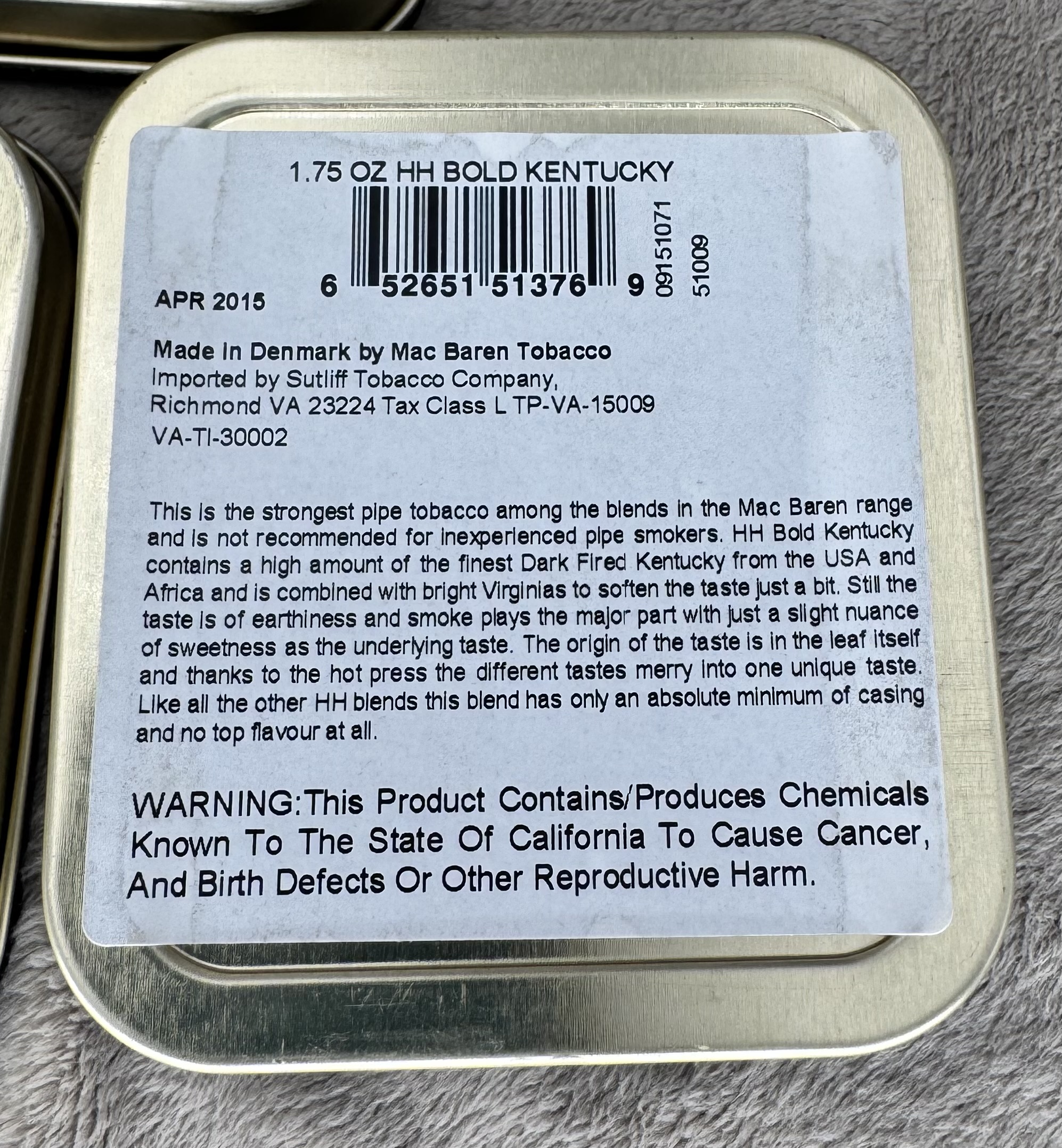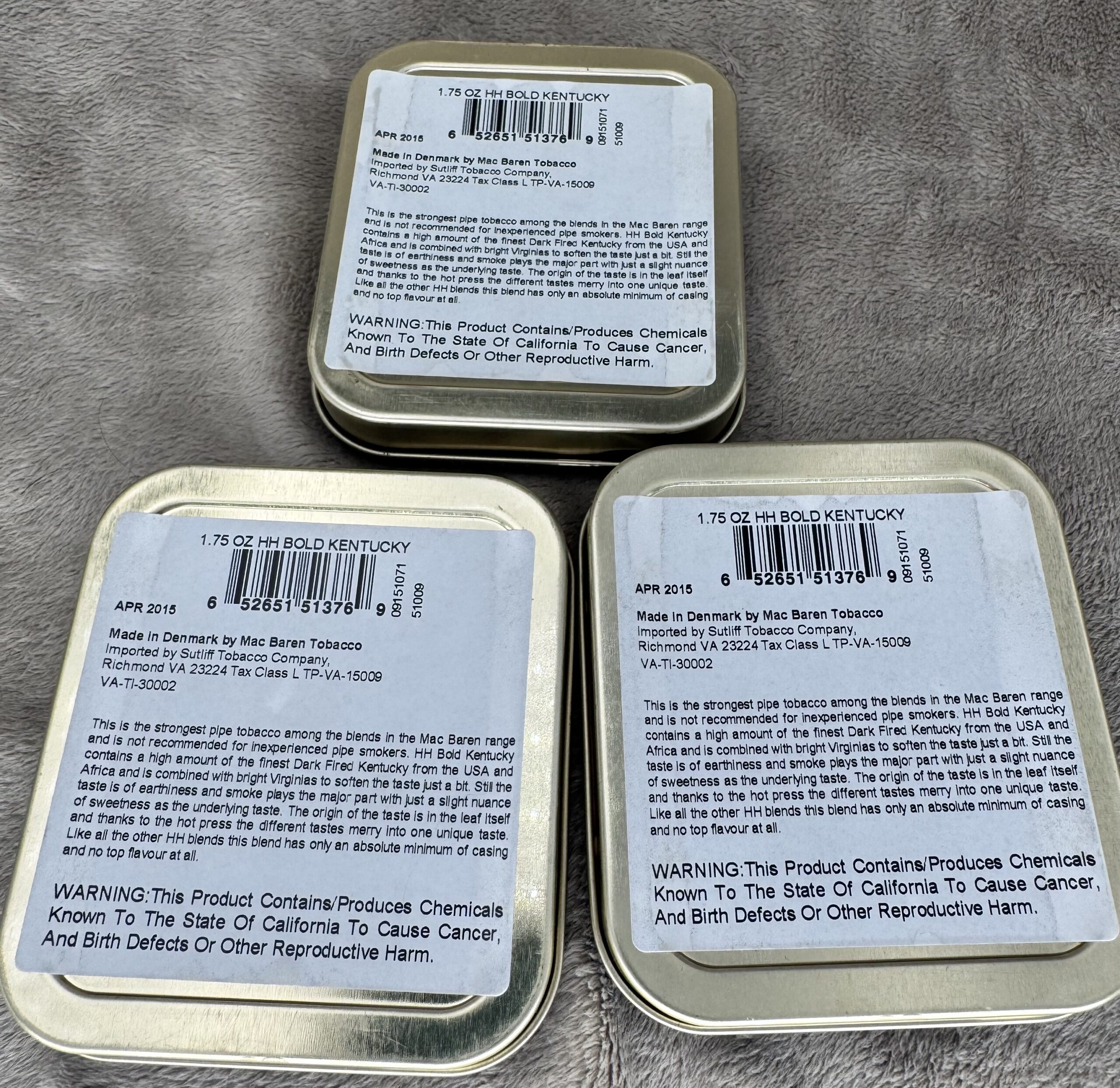 3x Mac Baren HH Bold Kentucky 1.75 oz. Dated April 2015