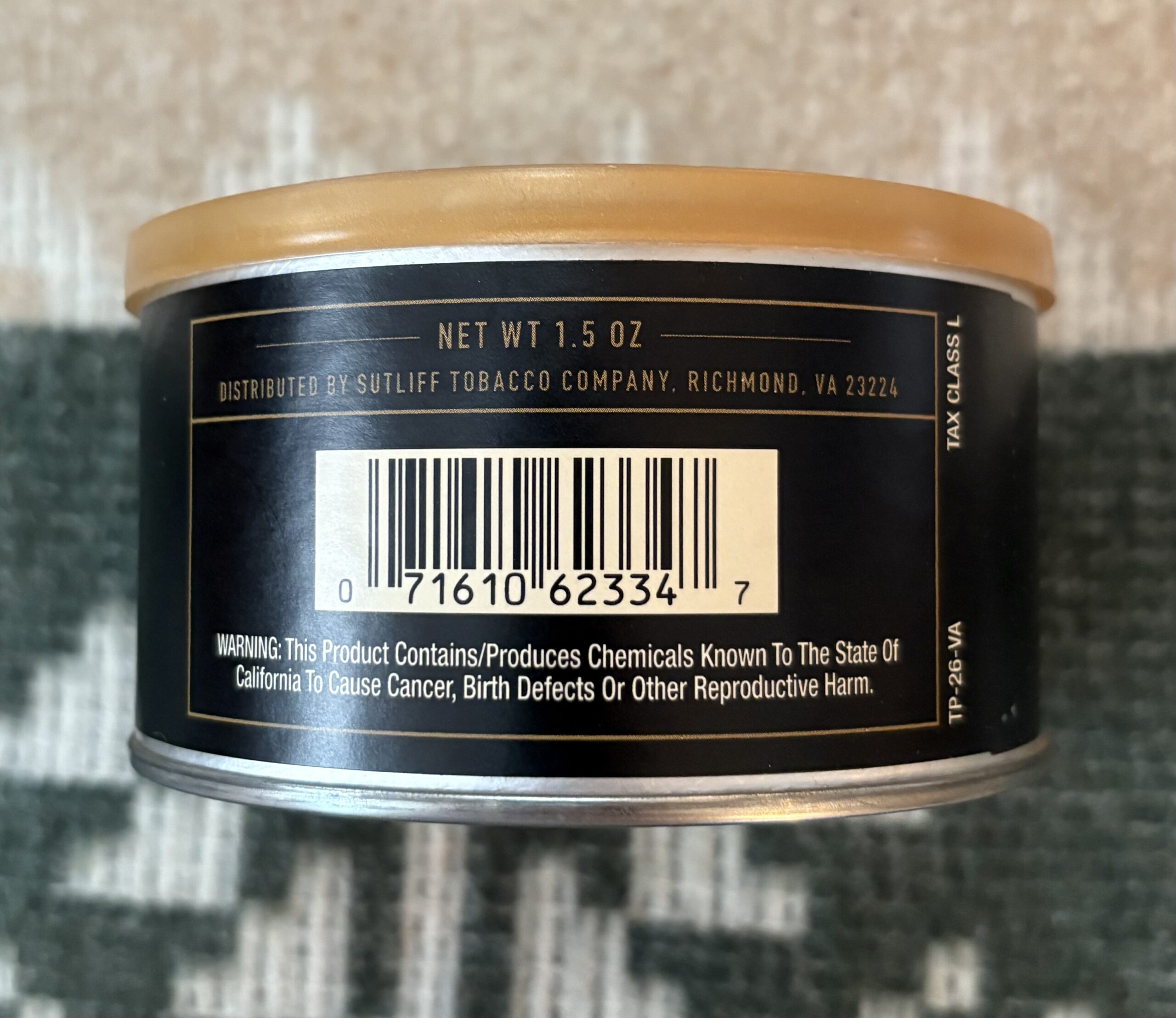 Sutliff private stock Barbados plantation sealed tin from 2012. 1.5 Oz quantity. Out of production. And sutliff is out of business now. Keep in mind this is an aromatic and I can’t attest to its moisture content. It’s a sweet rum cavandish blend. However with distilled water you could work on the humidity level. It’s sealed so I won’t open it. It’s collectable in nature. But with some basic know how will be fully serviceable.