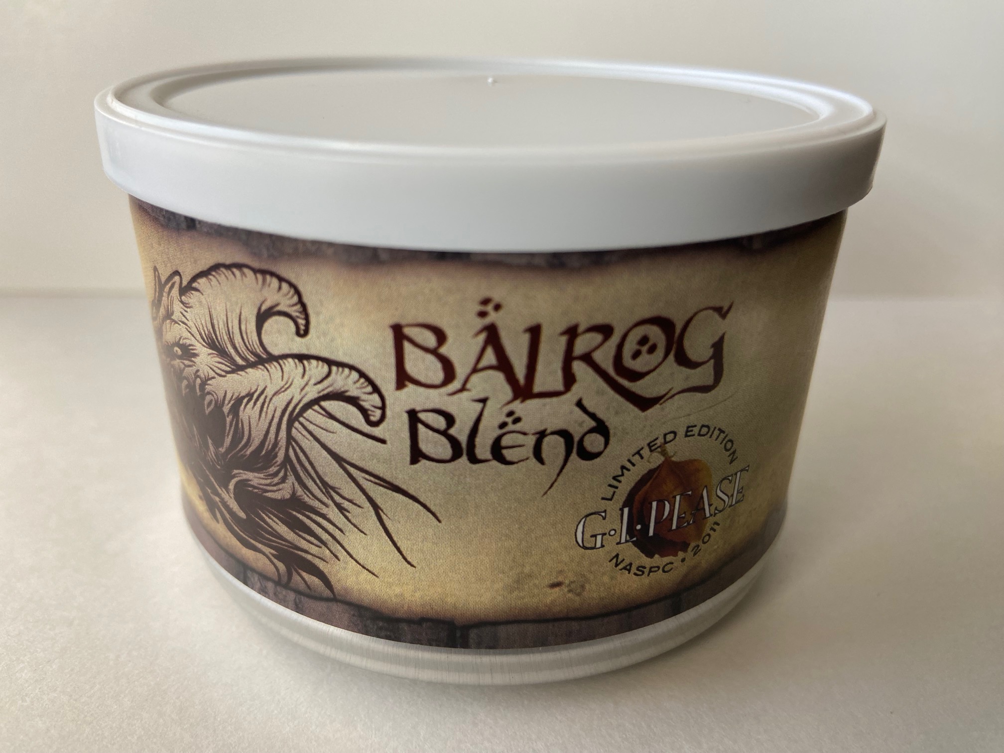 Unopened 2 ounce tin of 2011 G.L. Pease NASPC Balrog Blend. Only 175 tins of this blend were produced.