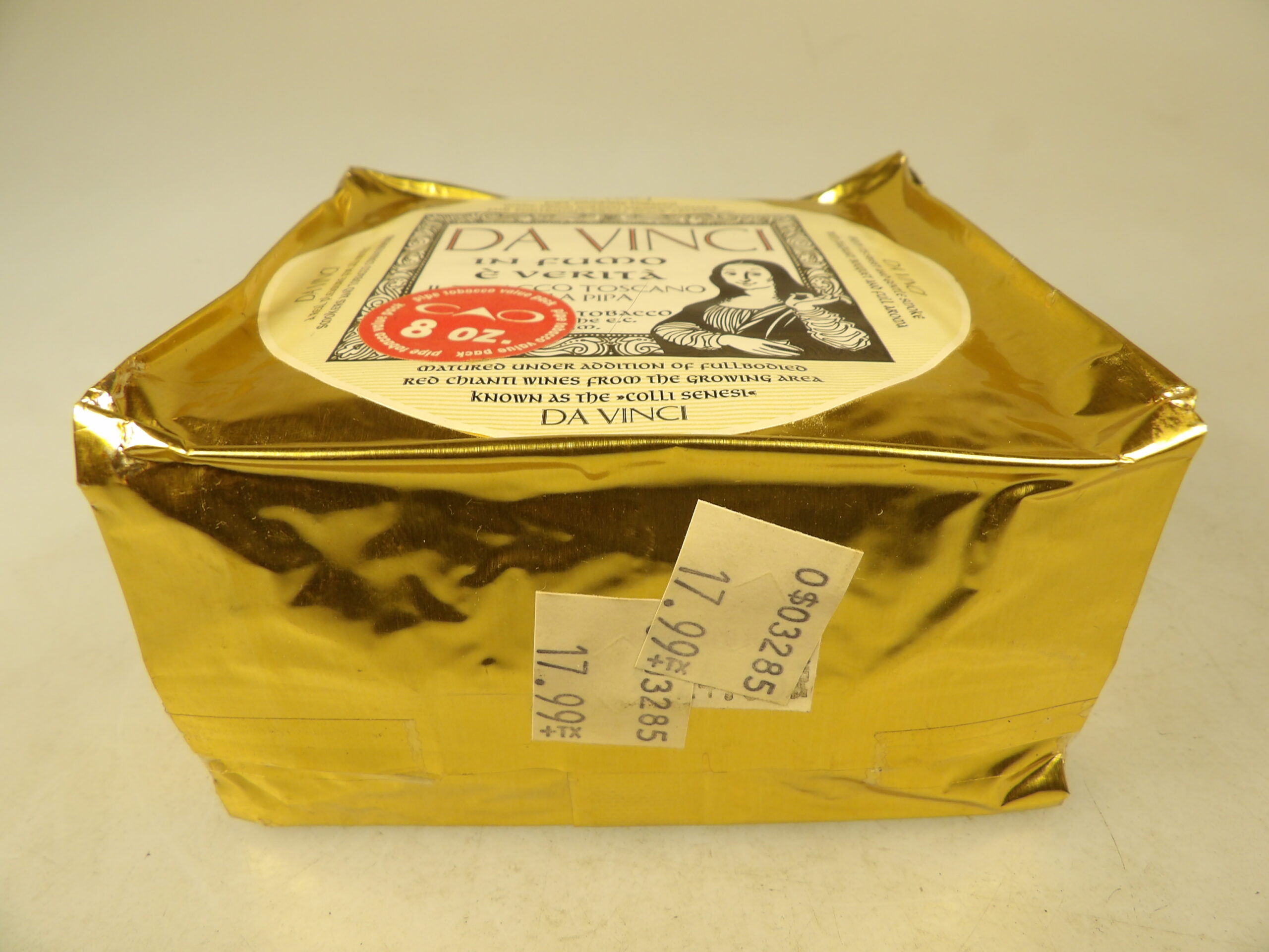 DESCRIPTION: Here is an auction for sale. It is a Vintage Collectible CAO Da Vinci 8 oz’s Pipe Tobacco Sealed Foil Pouch Made in Germany. This Foil Pouch has never been opened. A delightful blend of light Virginia grades combined with black cavendish. Infused with Tuscan red wine, this blend has a pleasant aroma. Notes: Tin of mid 90's CAO Da Vinci (manufactured in the EU by Dan Tobacco says, "Da Vinci pipe smoking tobacco made from golden light Virginia grades and soothing sweet mild black cavendish matured under addition of full-bodied red chianti wines from the growing area known as the Colli Senesi. A real pleasure for all spoilt smokers and tobacco connoisseurs, enjoy this sweet mild and pleasant smoke and its fragrant aroma." Good Luck Bidding and Thanks for Stopping by.