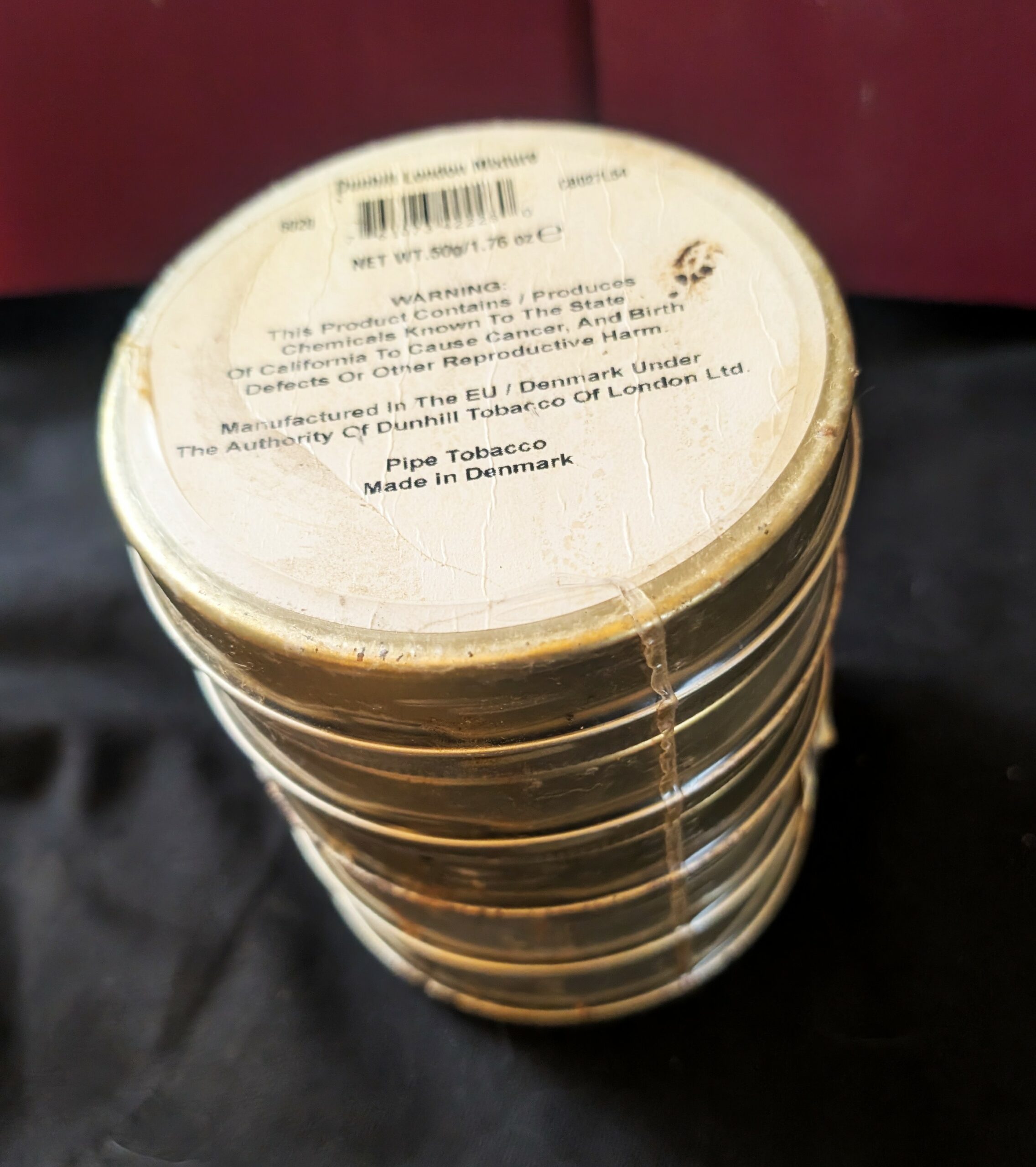 5 50-gram tins, still in the Dunhill shrink-wrap. These were bought shortly before Peterson took over the Dunhill tobaccos.