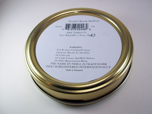 One 50g tin Three Year Matured Virginia purchased in July 2015 (date code -- CB02597 -- doesn't seem to have the letter indicating the month, but would be consistent with a 2015 production). And one 50g tin Ready Rubbed purchased at about the same time as the other tin (date code -- CB025E44 -- would indicate a May 4, 2015 production. Both tins are sealed and in excellent condition.