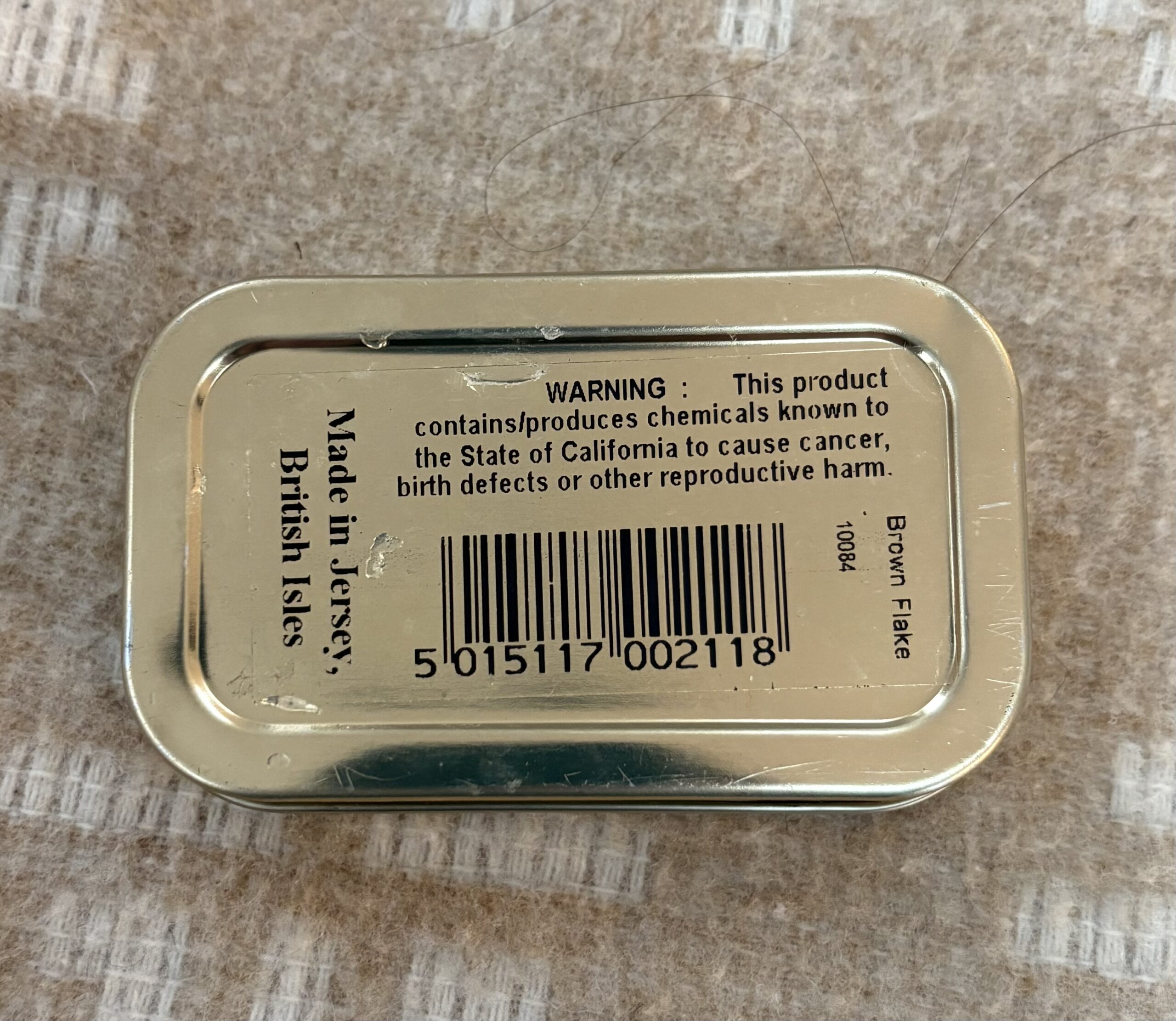 Sealed 50 Gram tin of the rare JF Germain Brown Flake. This is aged from 2010 and has been stored in Mylar. Taken out for pictures. Made by the same blending house that makes esoterica. Currently this blending is not being produced. And it’s 15 years (or slightly) older at this point.