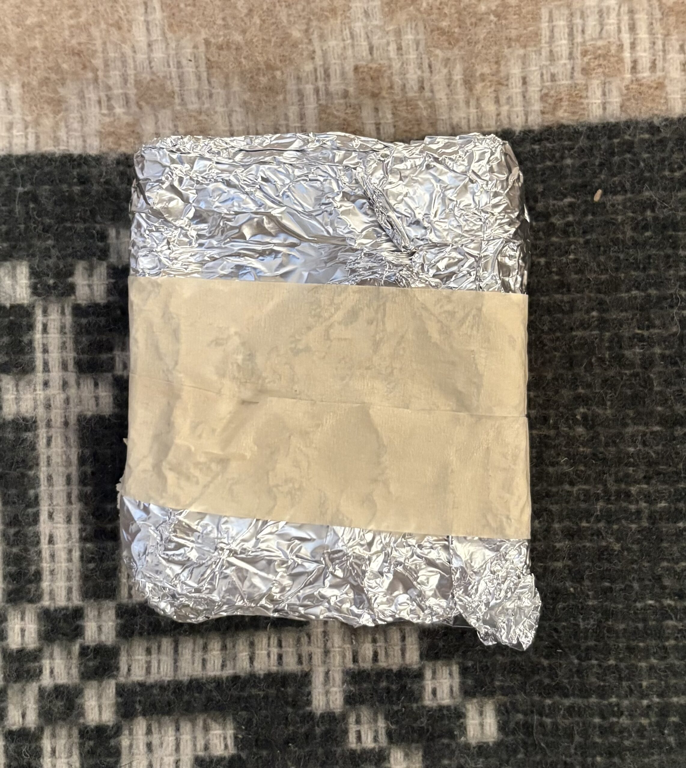 After initial purchase for collection this tin was wrapped in foil and then marked. This tin is the older square style that’s no longer made