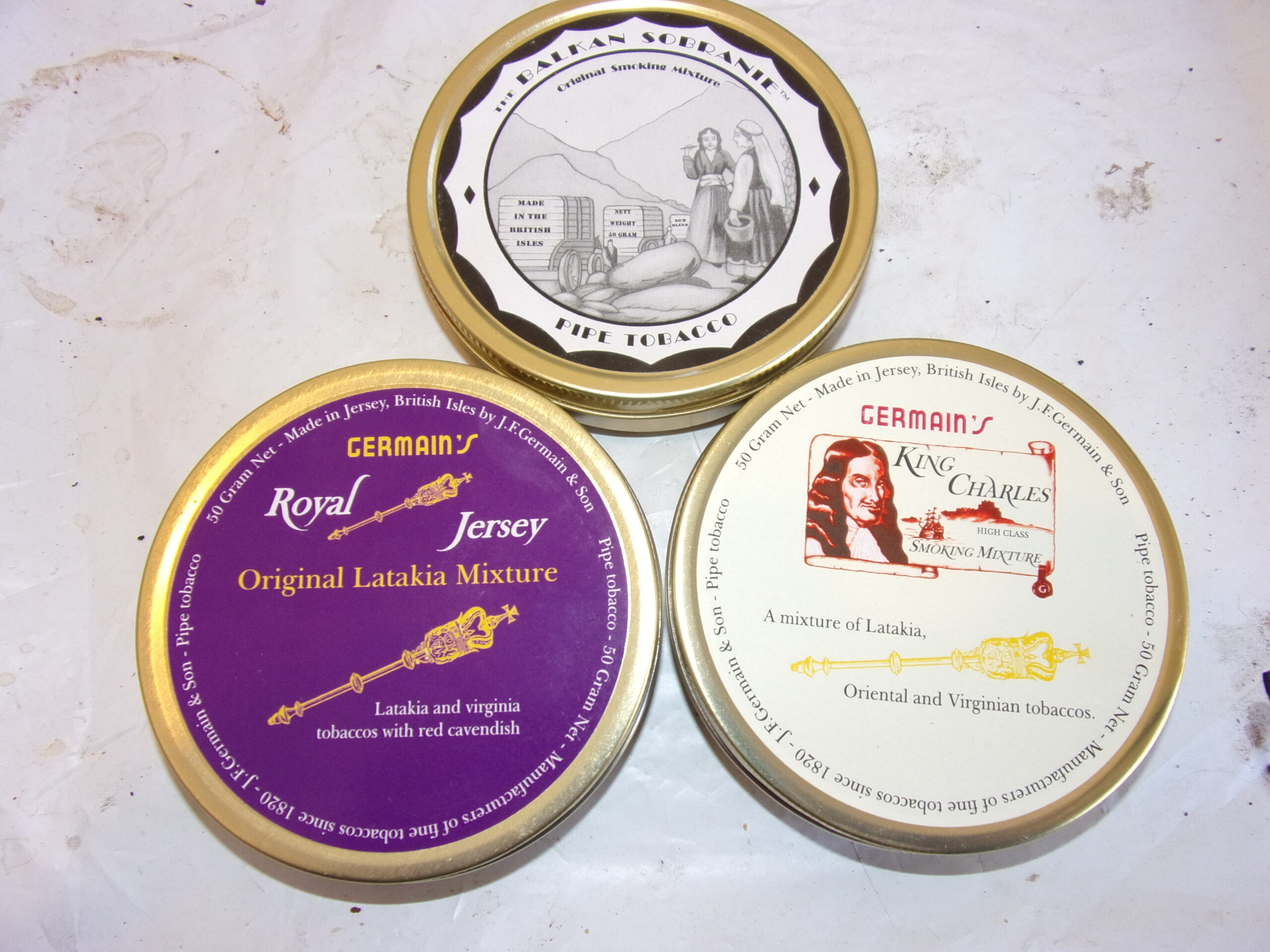 Germain's Latakia Lovers TRIPLE- Balkan Sobranie, King Charles, Royal Jersey NR 5 day BID 285 BIN 295