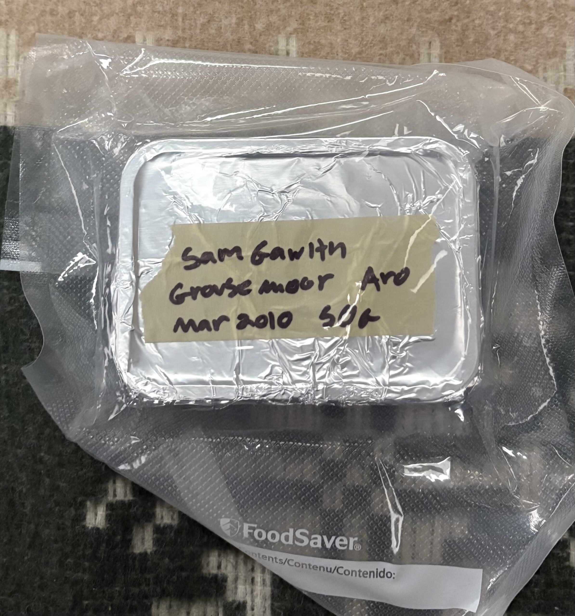 Sealed tin of Sam gawith grousemoor in 50g quantity. Remains sealed. This has been happily aging away for 15 years plus. Wrapped in foil, marked and then put into new Mylar food saver packaging.
