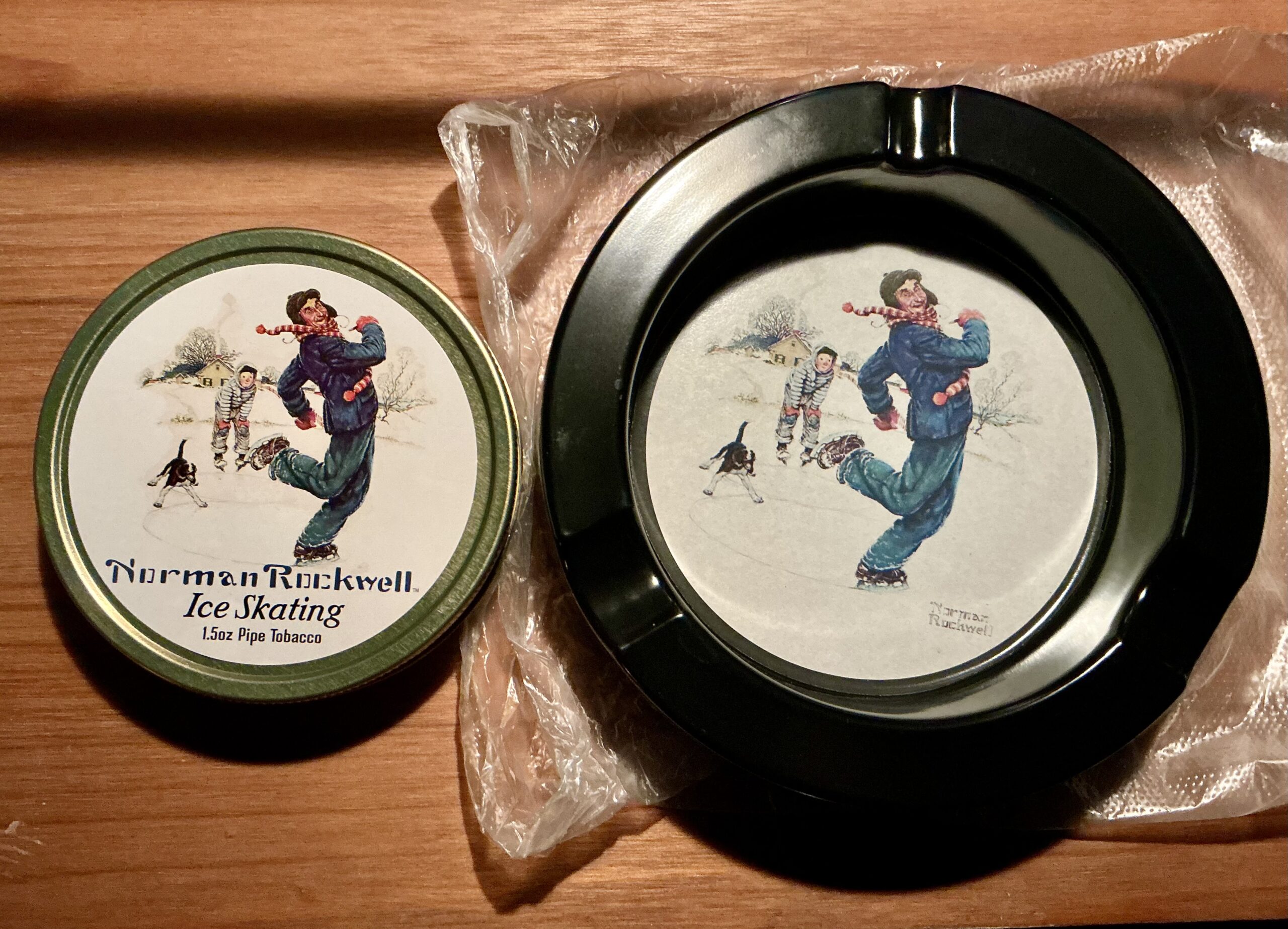 Norman Rockwell - Ice Skating Tin & Ashtray Combo Set