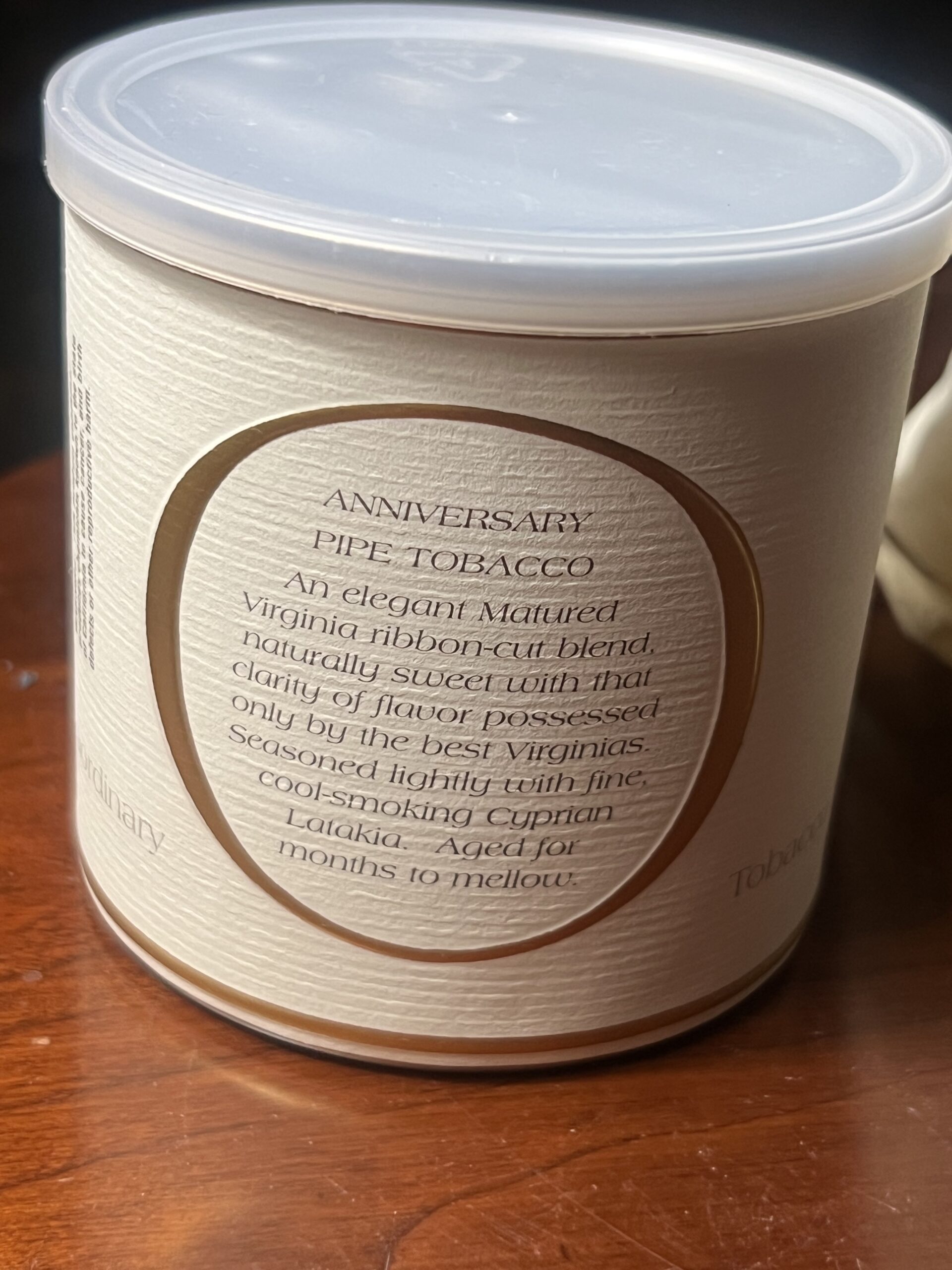 An elegant Matured Virginia ribbon-cut blend, naturally sweet with that clarity of flavor possessed only by the best Virginias. Seasoned lightly with fine, cool-smoking Cyprian Latakia. Aged for months to mellow.
