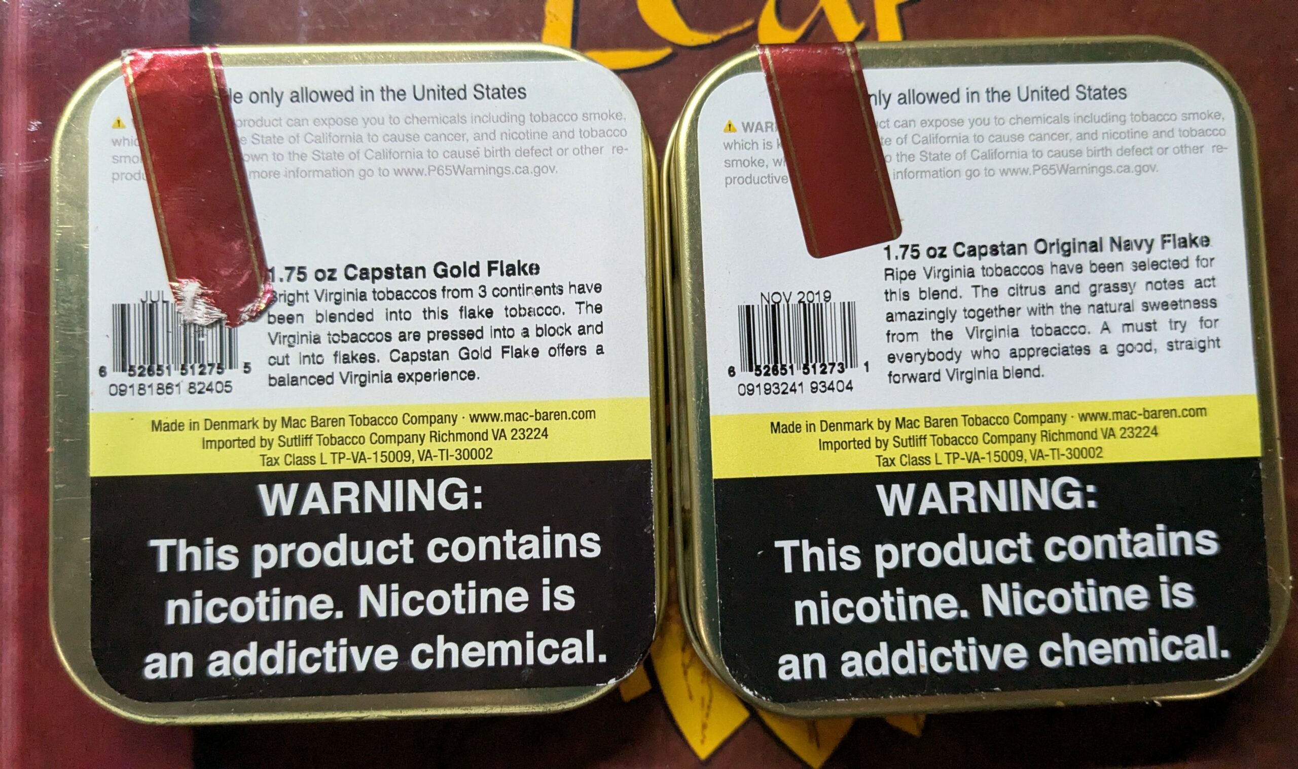 Capstan Blue Navy and Yellow (Gold) Flake Sealed tins aged 5+ years