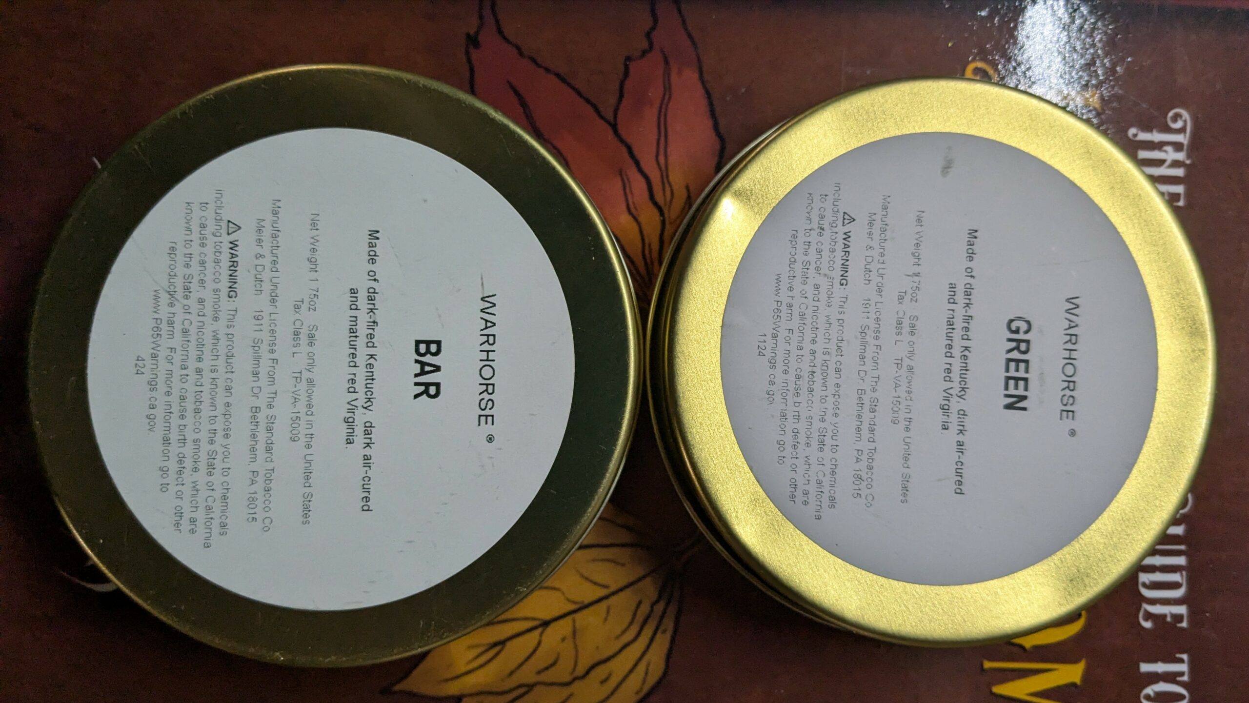 War Horse Bar and Green sealed tins